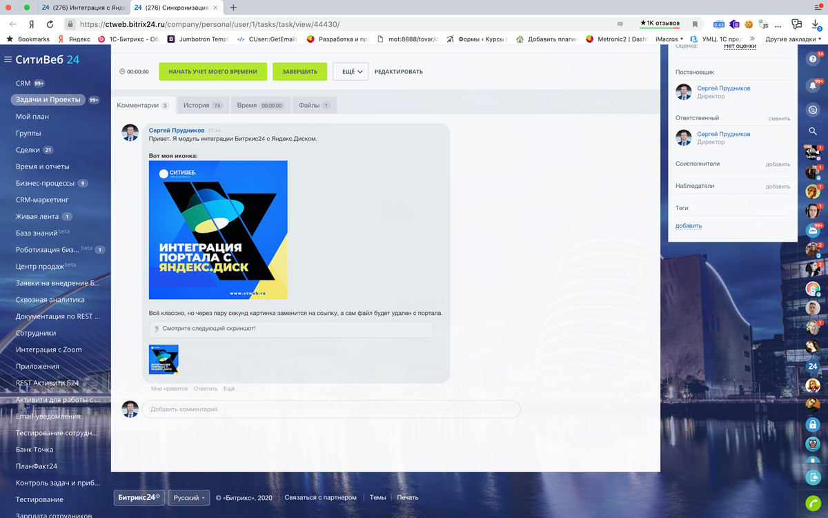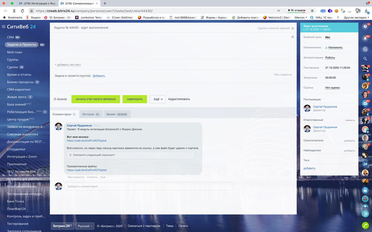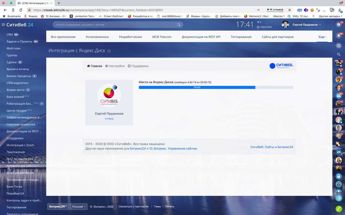 Приложение распространяется в рамках Подписки Битрикс24.Маркет Плюс. Расширенный план для Яндекс.Диск вы покупаете самостоятельно. Подробнее о тарифах.