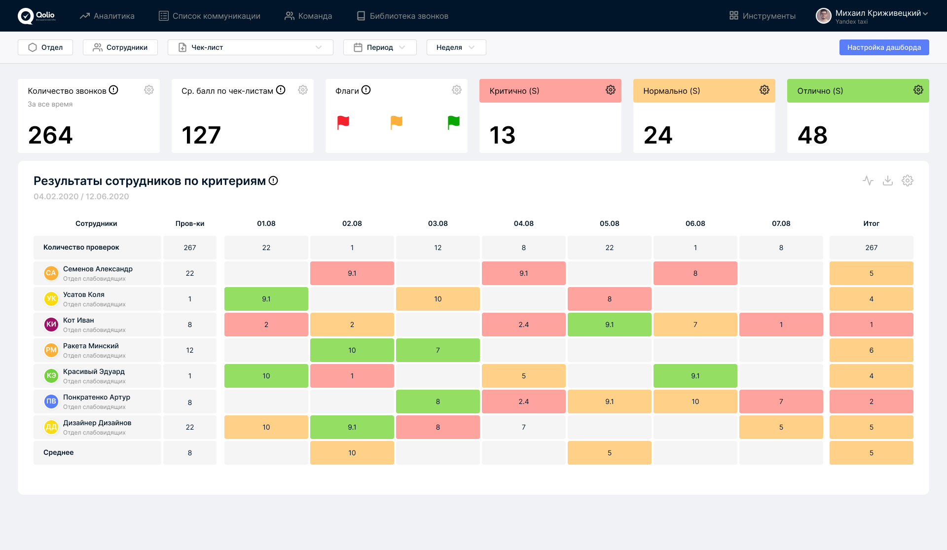 Сервис позволяет управлять всем процессом контроля качества от оценки звонков и предоставления обратной связи сотрудникам до глубокой аналитики по каждому отделу или отдельной ситуации.
