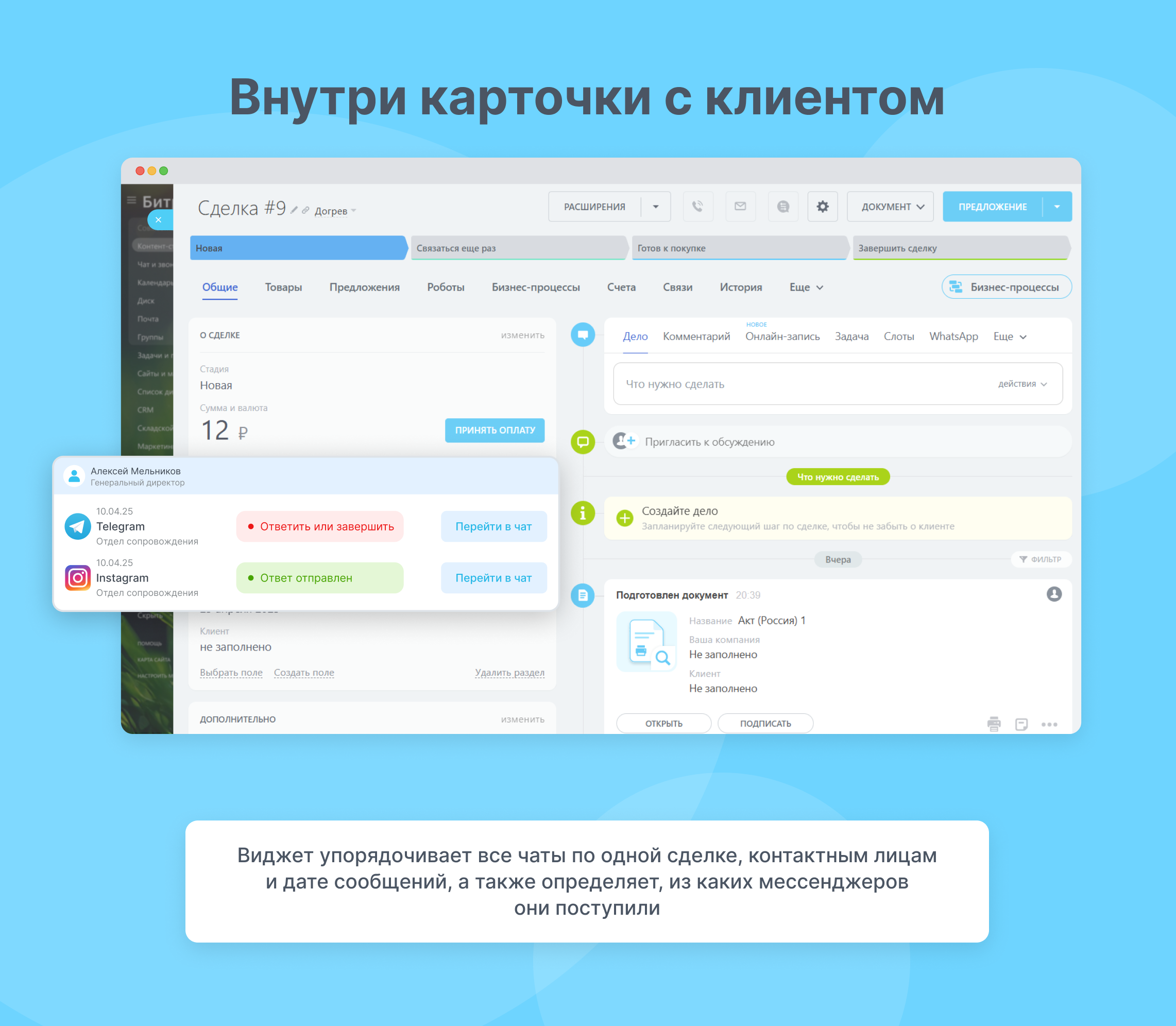 Виджет для удобной работы с чатами внутри карточки CRM