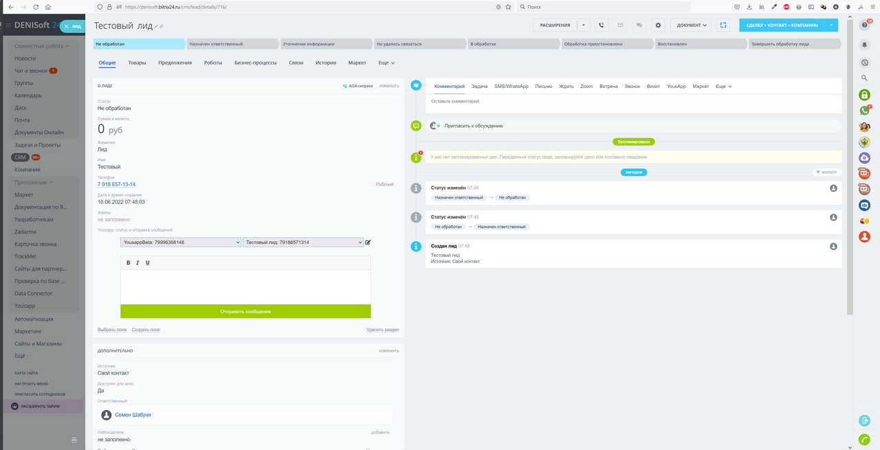 - Приложение "Статусы и отправка сообщений" в карточке сущности!