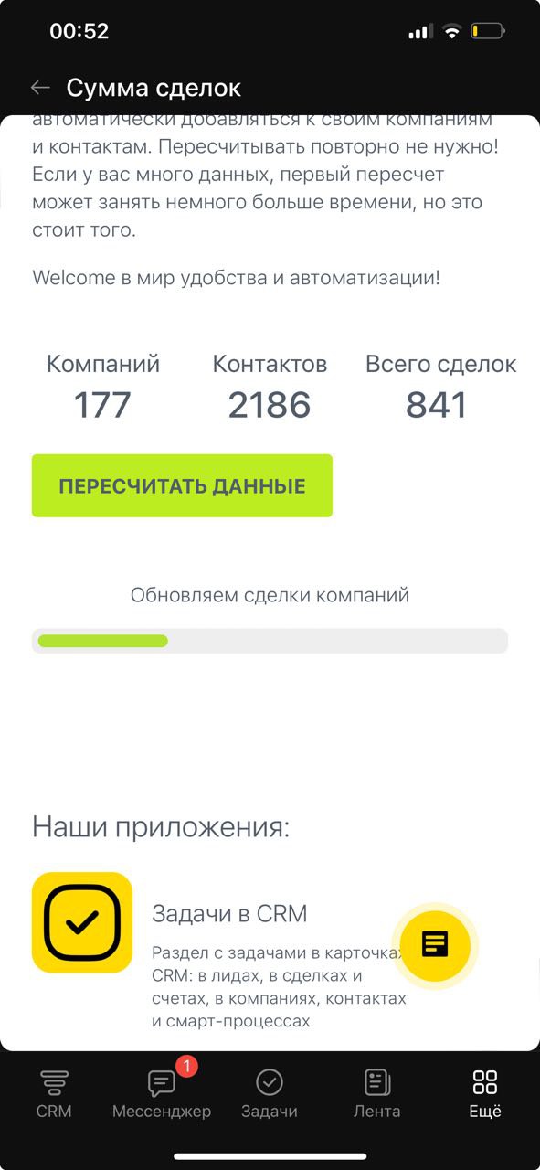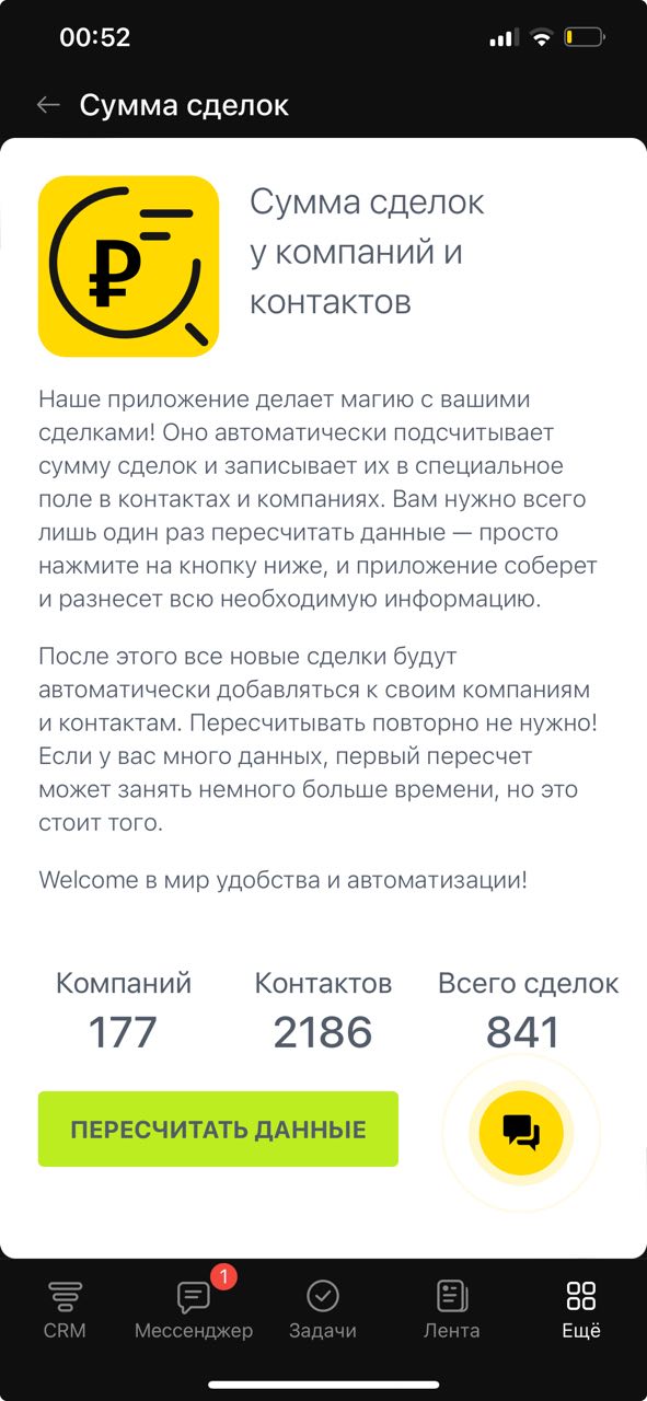 После первичного заполнения поля «Сумма сделок» приложение автоматически будет обновлять данные при появлении новых сделок или их удалении.