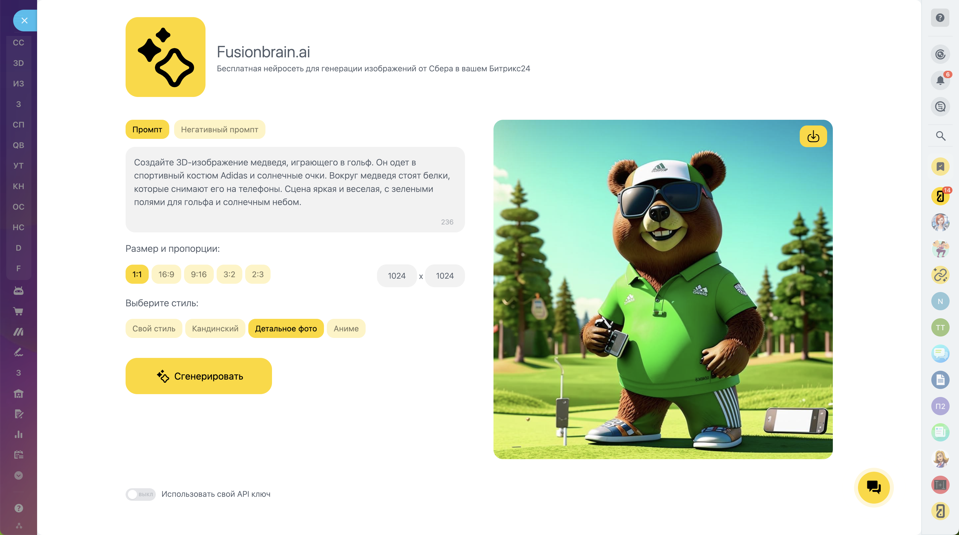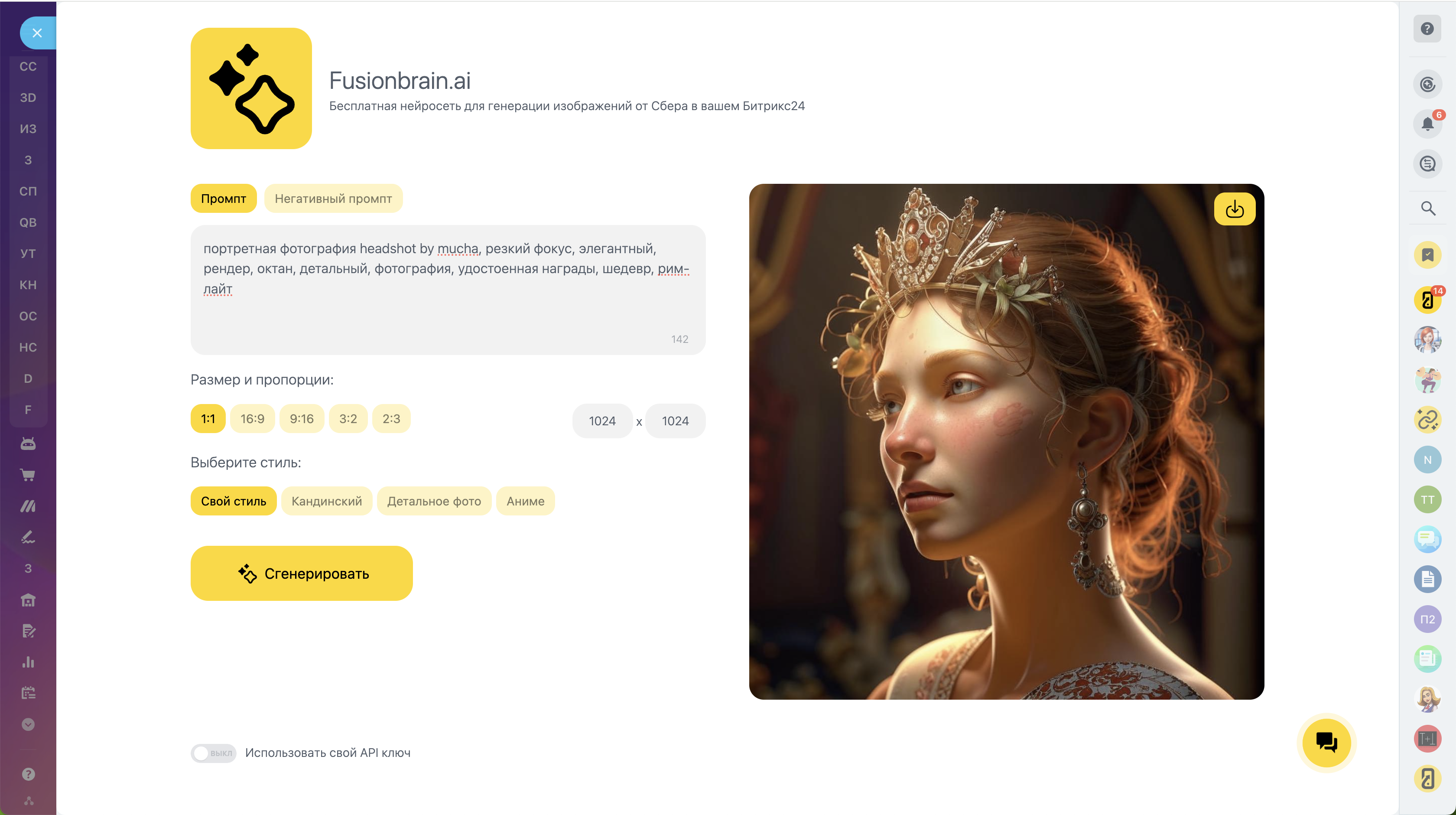 Бесплатная нейросеть Kandinsky для генерации изображений от Сбера в вашем Битрикс24
