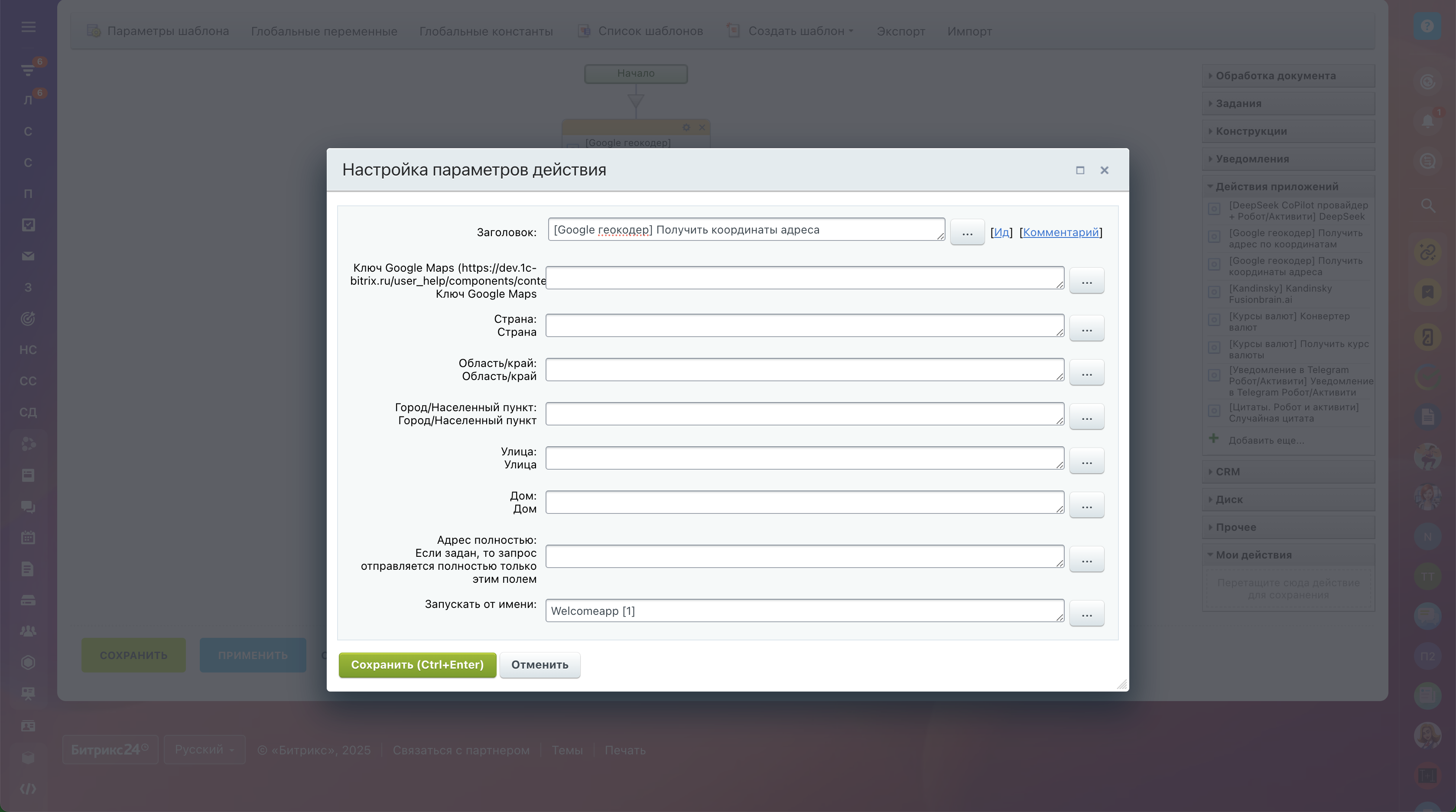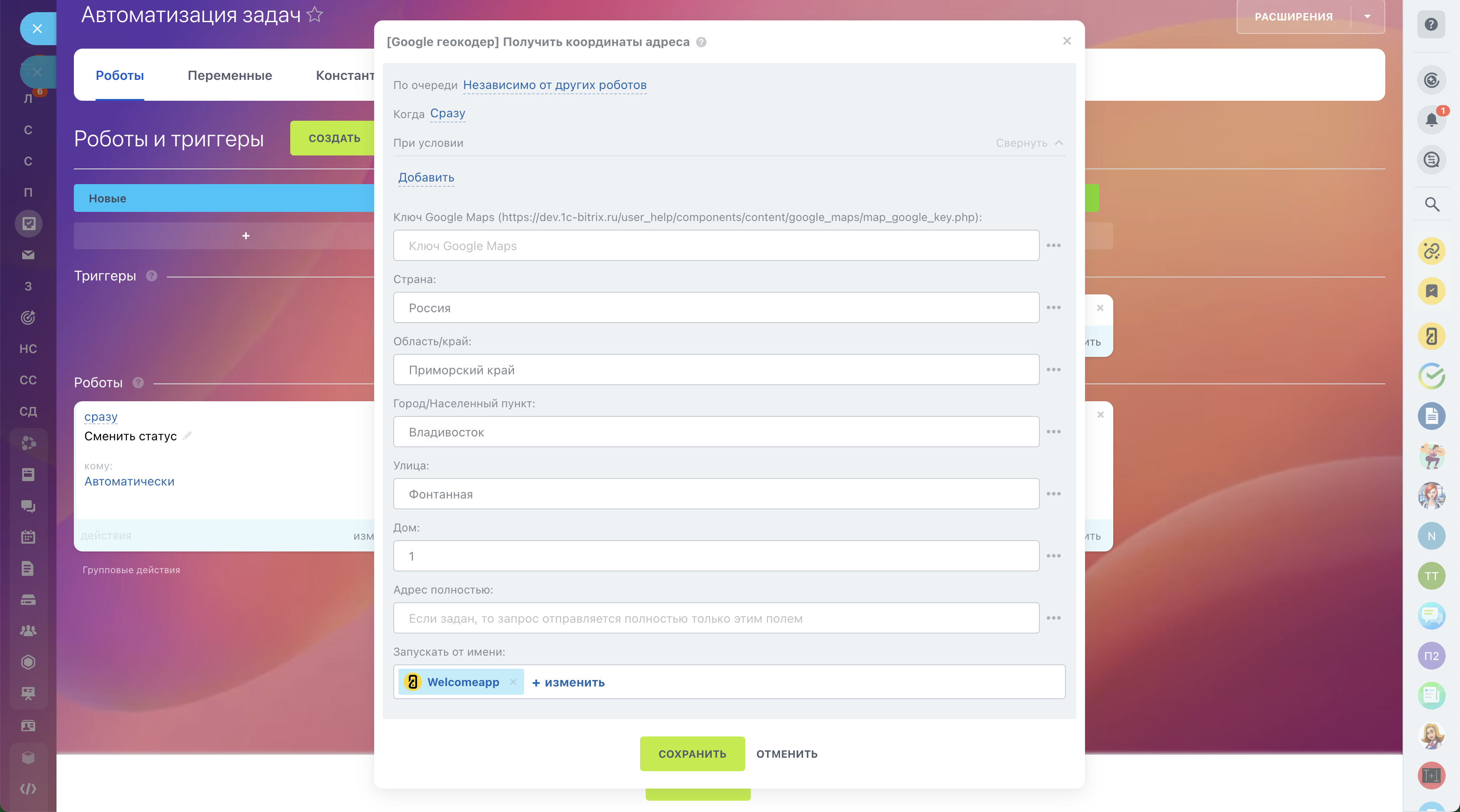 Определение координат по адресу и наоборот средствами Google Maps API в роботах и бизнес-процессах