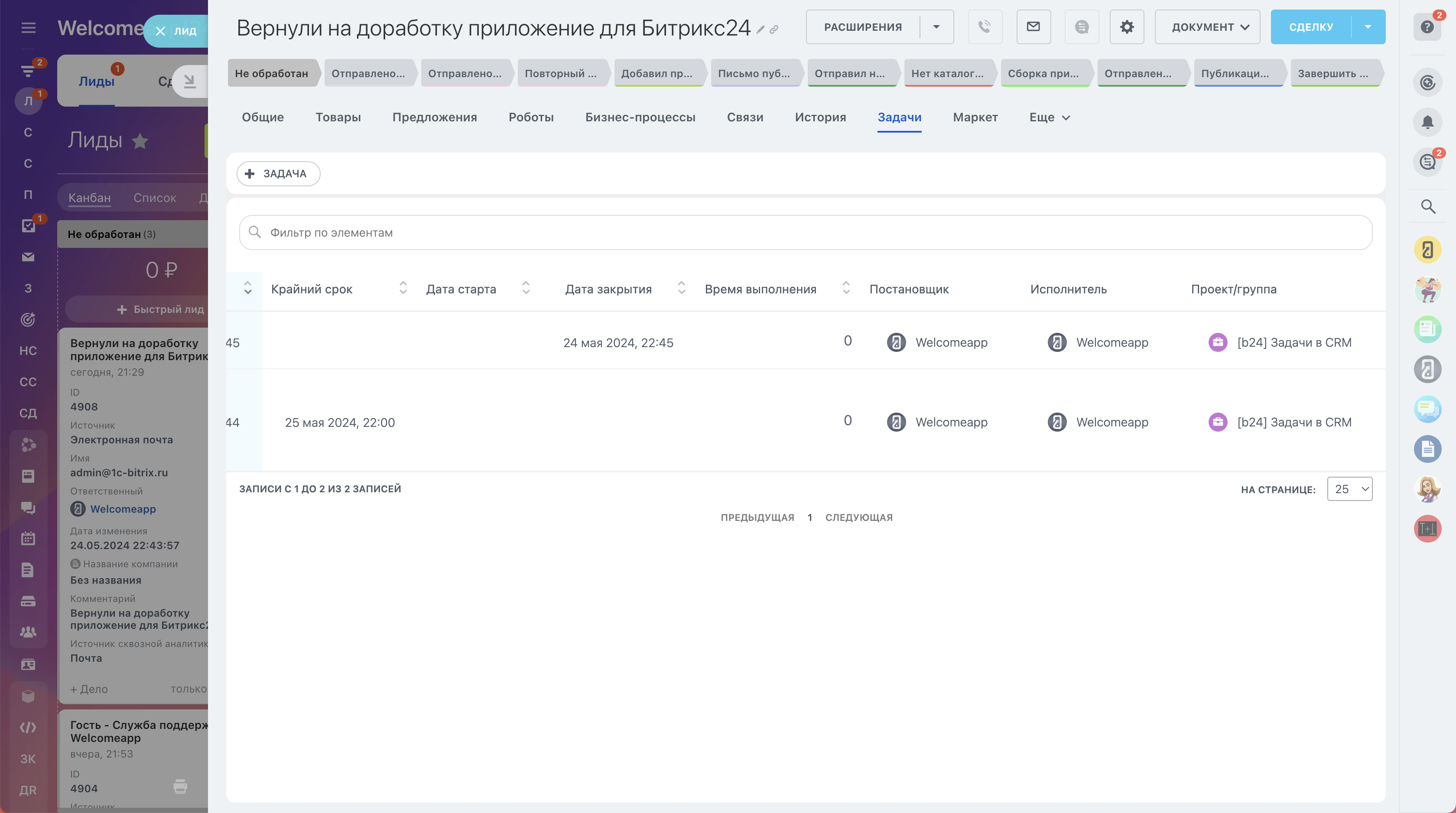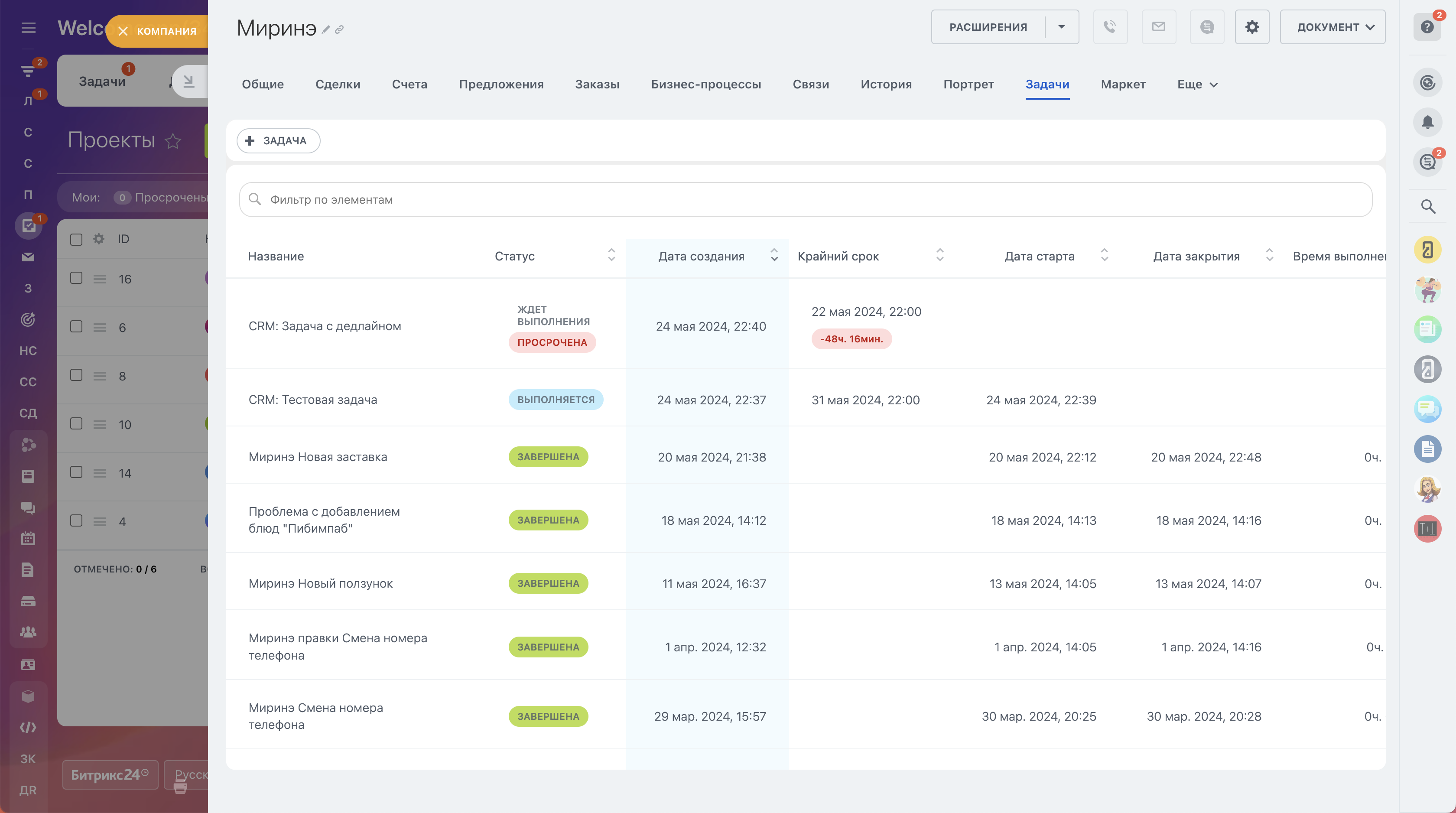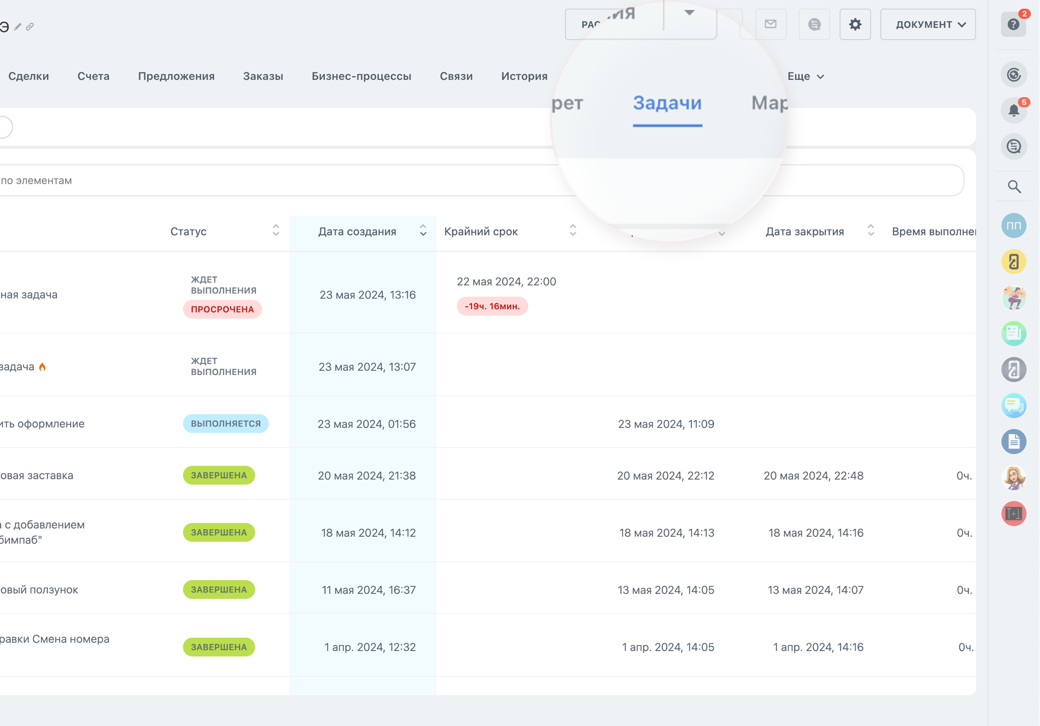 Задачи в CRM (в сделках, счетах, лидах, компаниях, контактах, смарт-процессах)