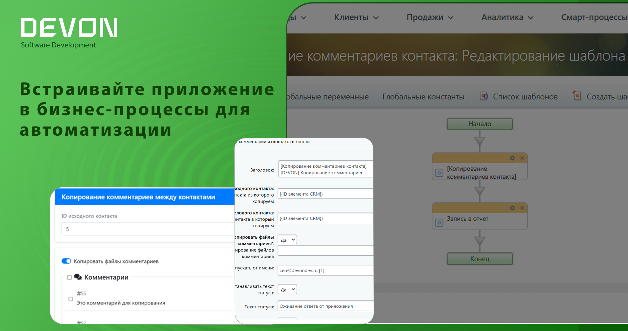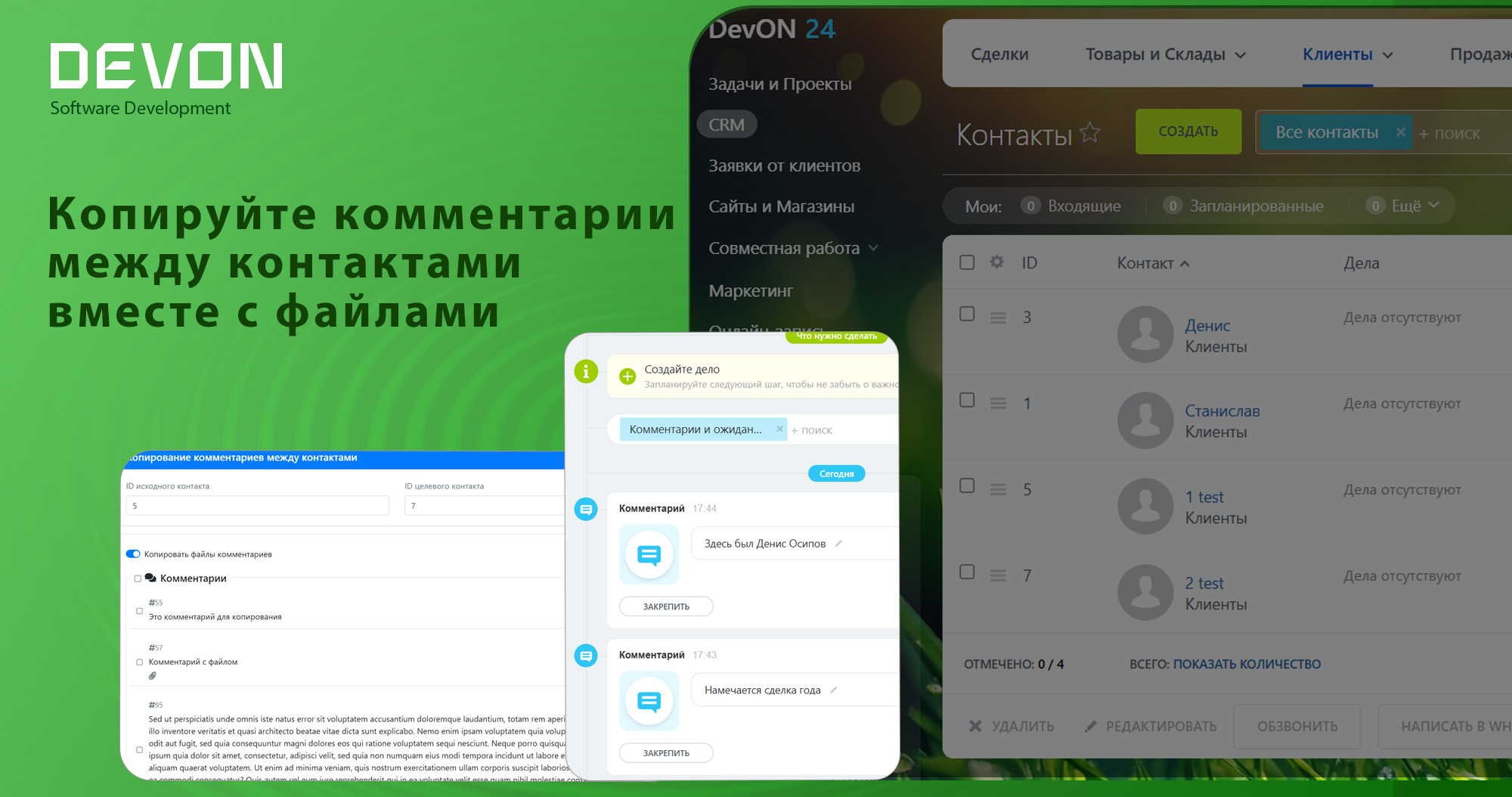Легко скопируйте комментарии вместе с файлами из одного контакта в другой вручную или из бизнес-процесса
