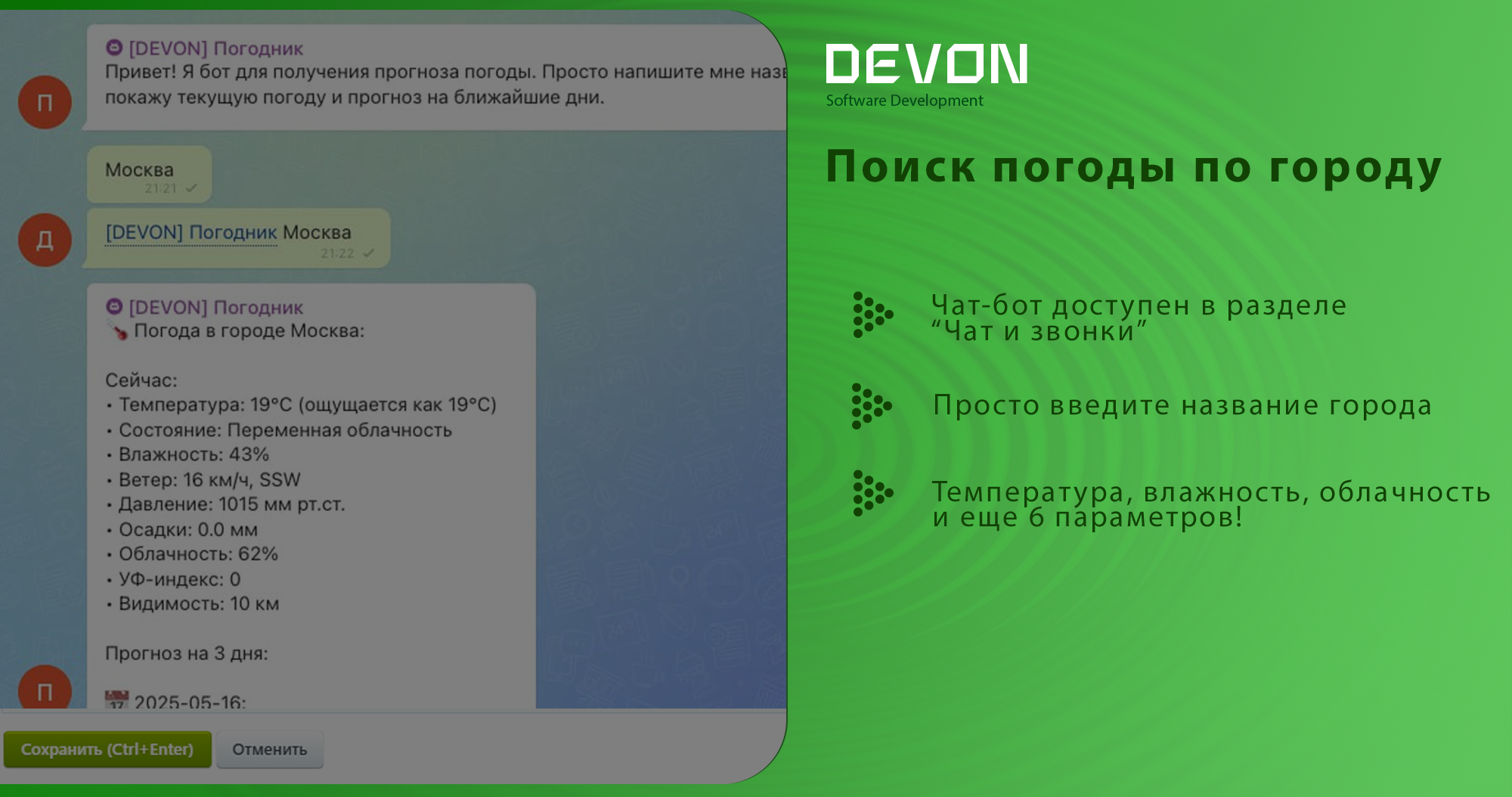 Также Вы можете заказать бесплатную разработку приложения под ваши задачи. Через TG: @devon_support_bot, Открытый чат или форму на сайте