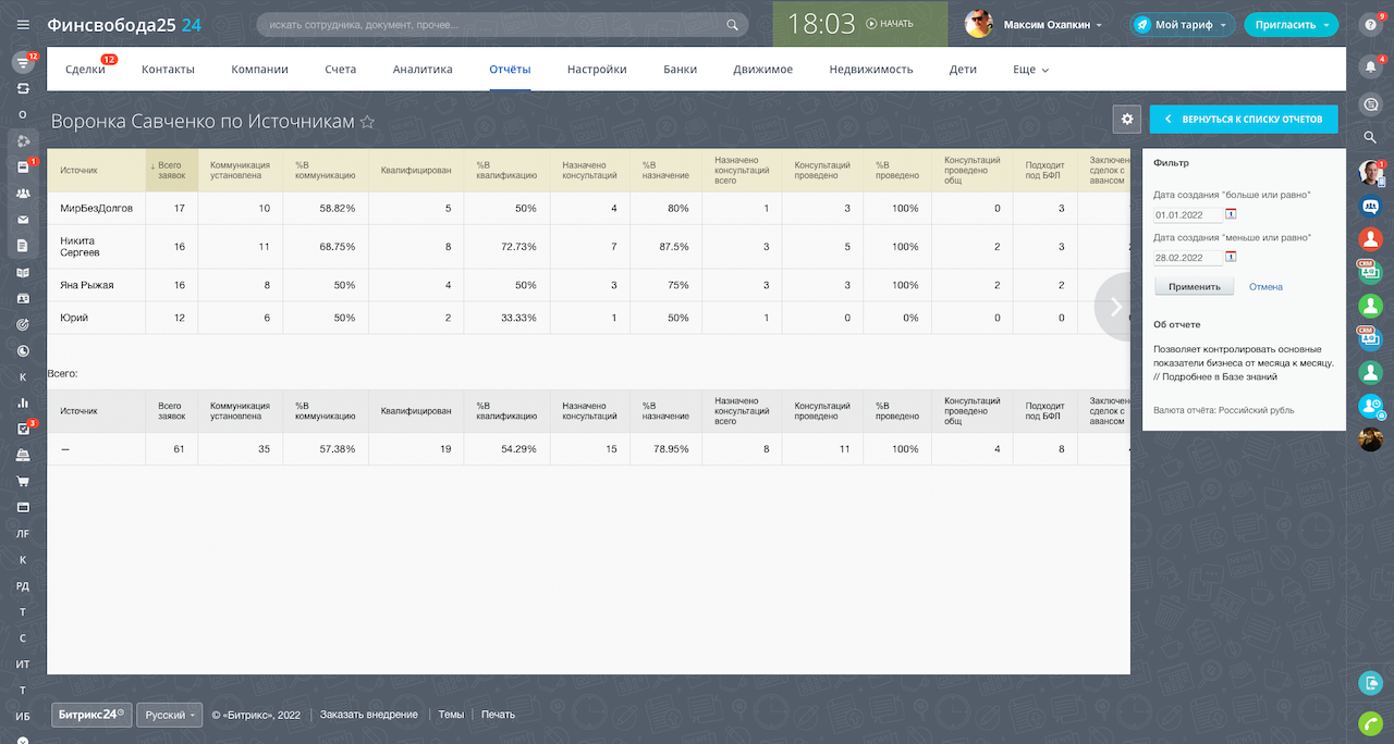 - Воронка Савченко по источникам - Показывает конверсии по источникам трафика, можно оценить рентабельность по каналам привлечения заявок.