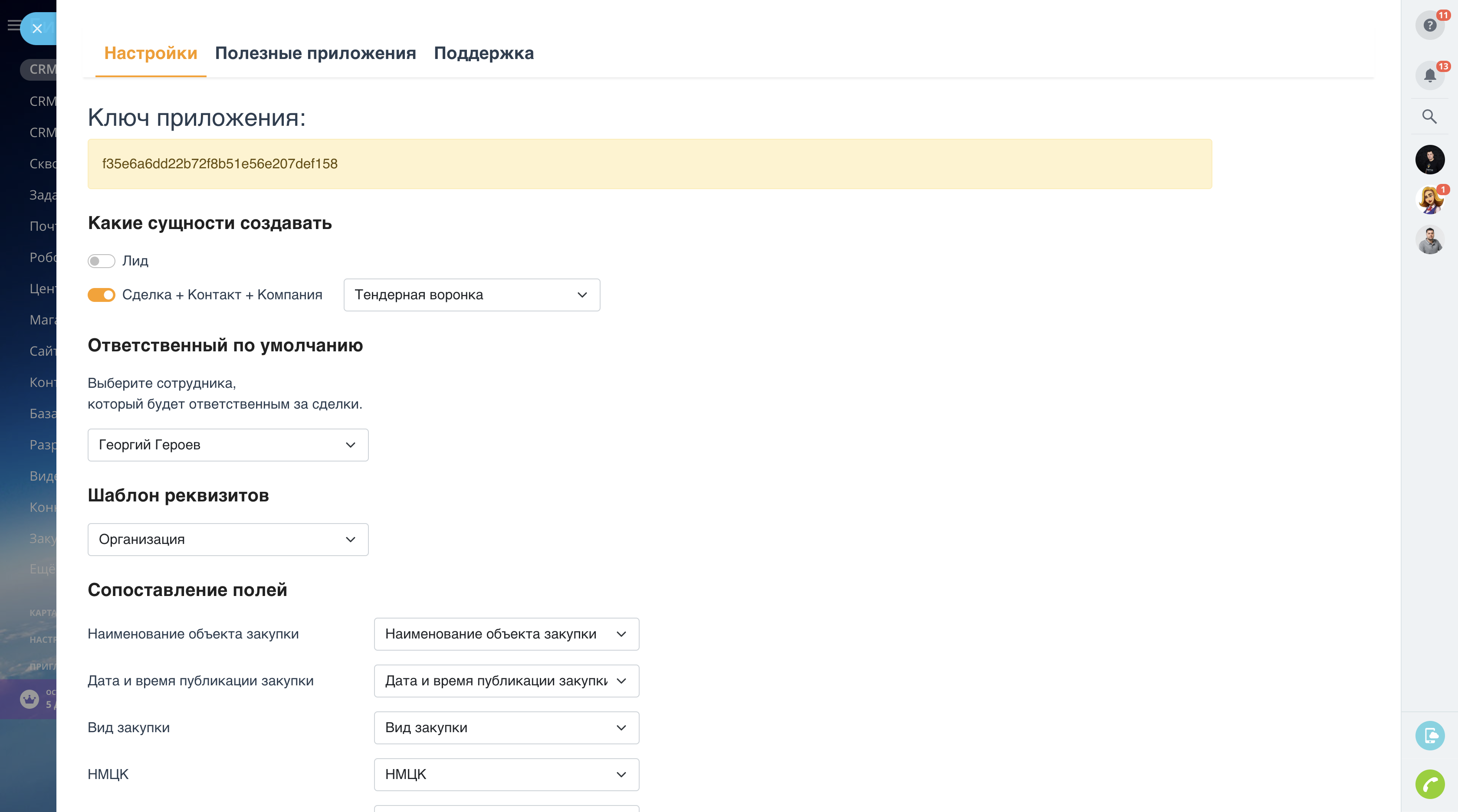 Приложение позволяет в 1 клик скачивать тендеры с сайта zakupki.gov.ru и создавать в Битрикс24 лиды или сделки.