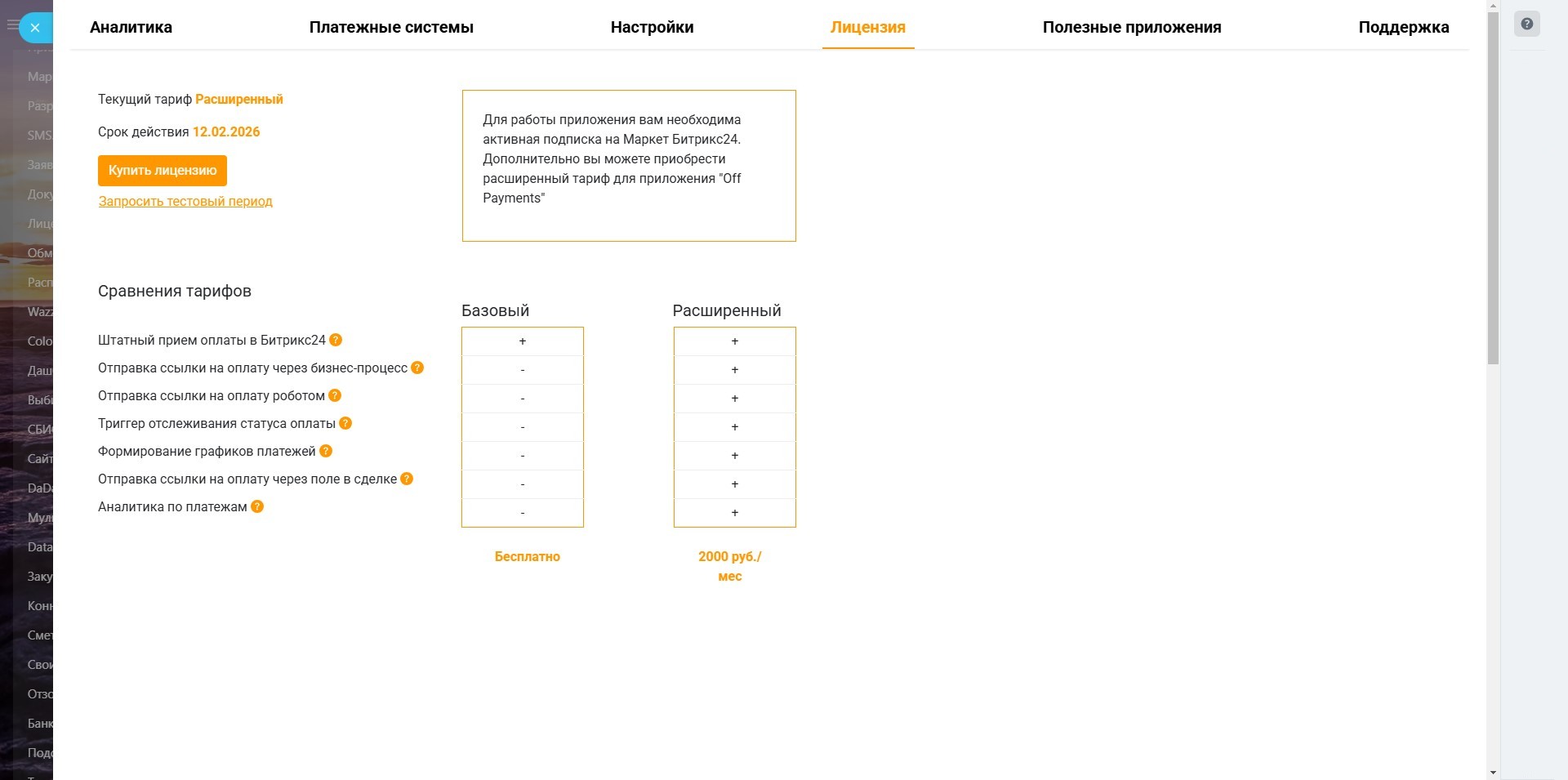 - График платежей (не будет работать автоматическая отправка, но ссылки по платежам будут формироваться и их можно будет отправить вручную)