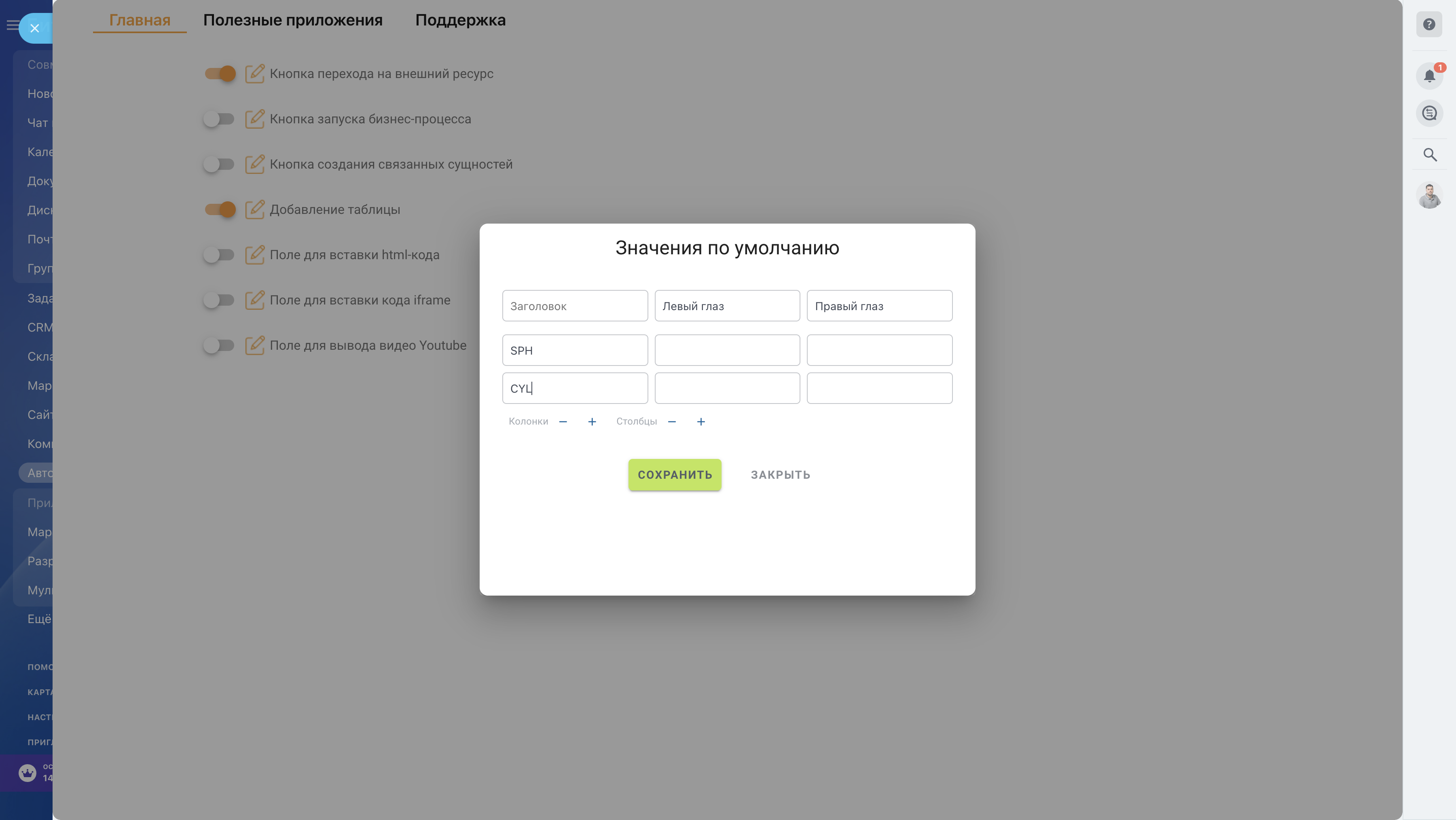 Приложение "Мультиполятор" позволяет добавлять новые типы полей, которые могут быть выбраны в левой части стандартной карточки CRM. Например, вы можете добавить кнопку для запуска любого бизнес-процесса в нужное место левой части карточки сделки или добавить шаблон таблицы, которую будет заполнять менеджер. Новые поля могут быть по умолчанию пустыми, могут быть заполнены по шаблону (в каждой новой сделке таблица будет заполнена по шаблону), а могут заполняться с помощью бизнес-процессов и роботов.