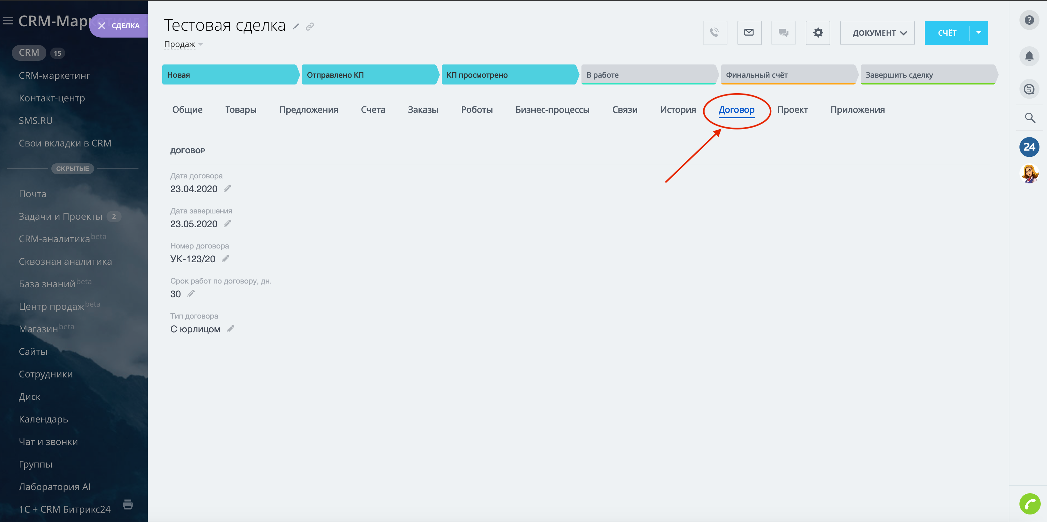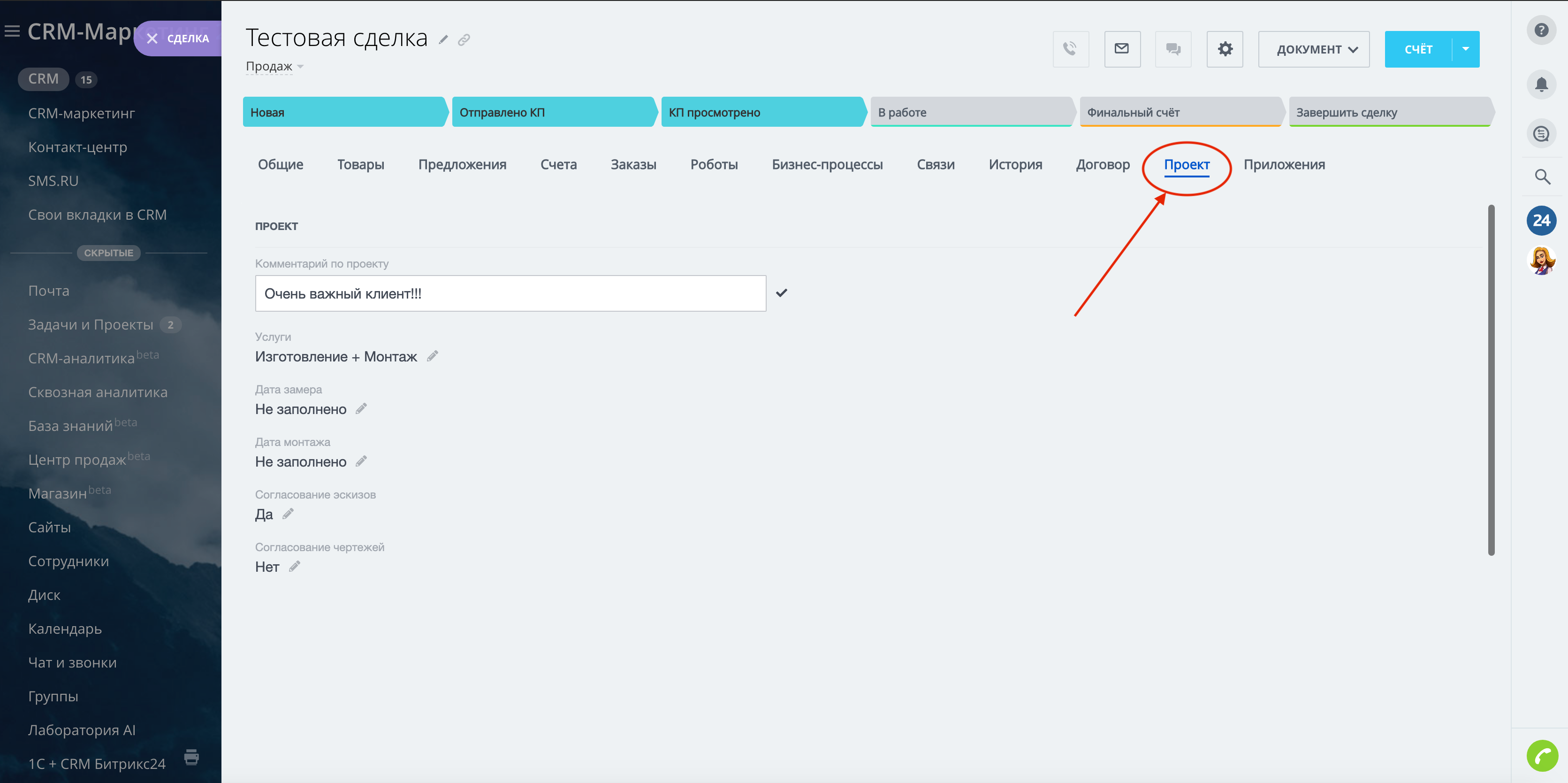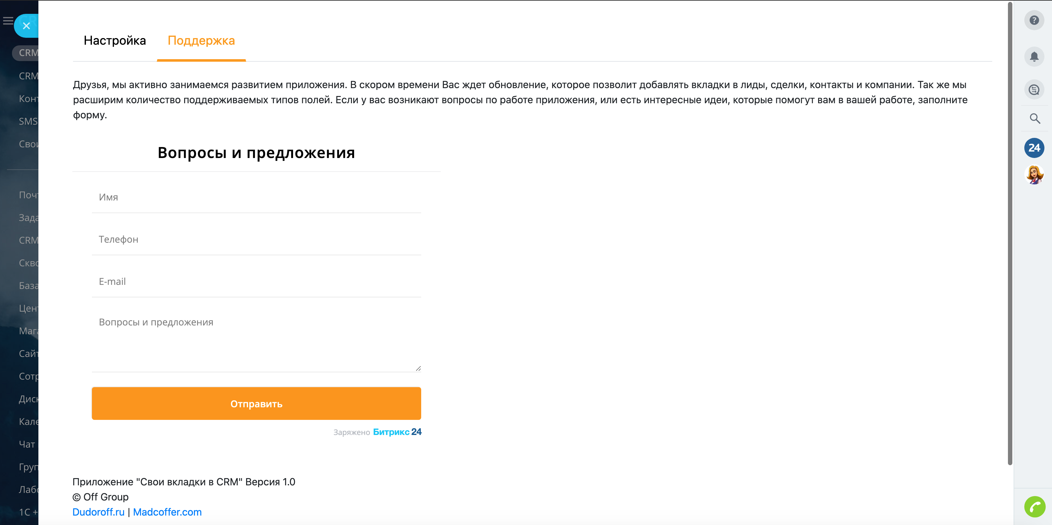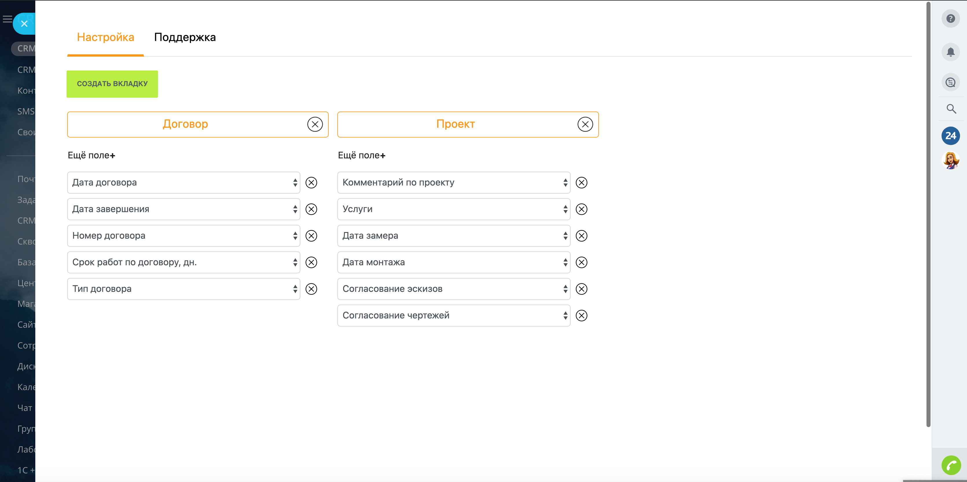 Приложение «Свои вкладки в CRM» позволяет систематизировать поля в Сделках CRM Битрикс24 путем создания дополнительных вкладок в горизонтальном меню.