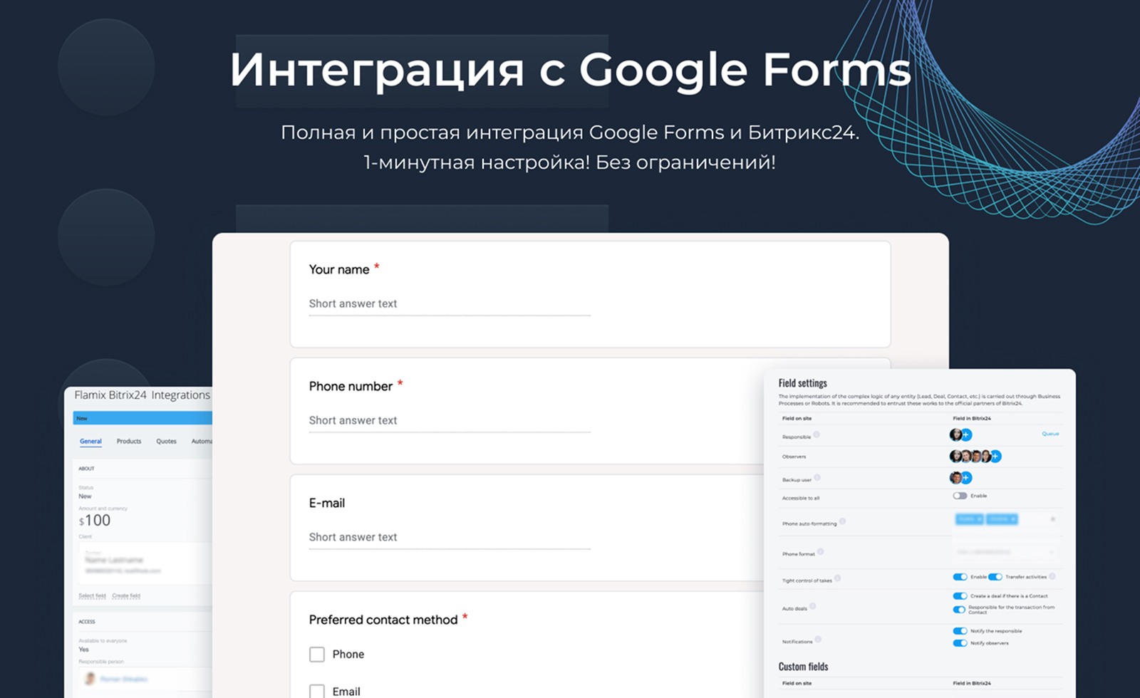 Интеграция Google Forms и Битрикс24 создает ЛИДы или Сделки после заполнения формы.