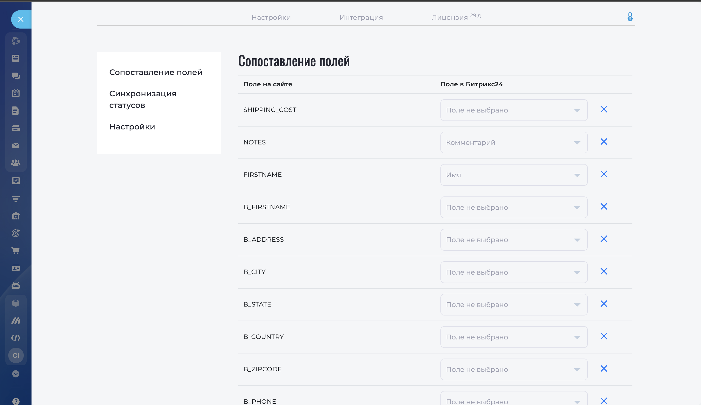 - Связывание товаров с сайта и Битрикс24 для корректного складского учета и интеграции с 1С;