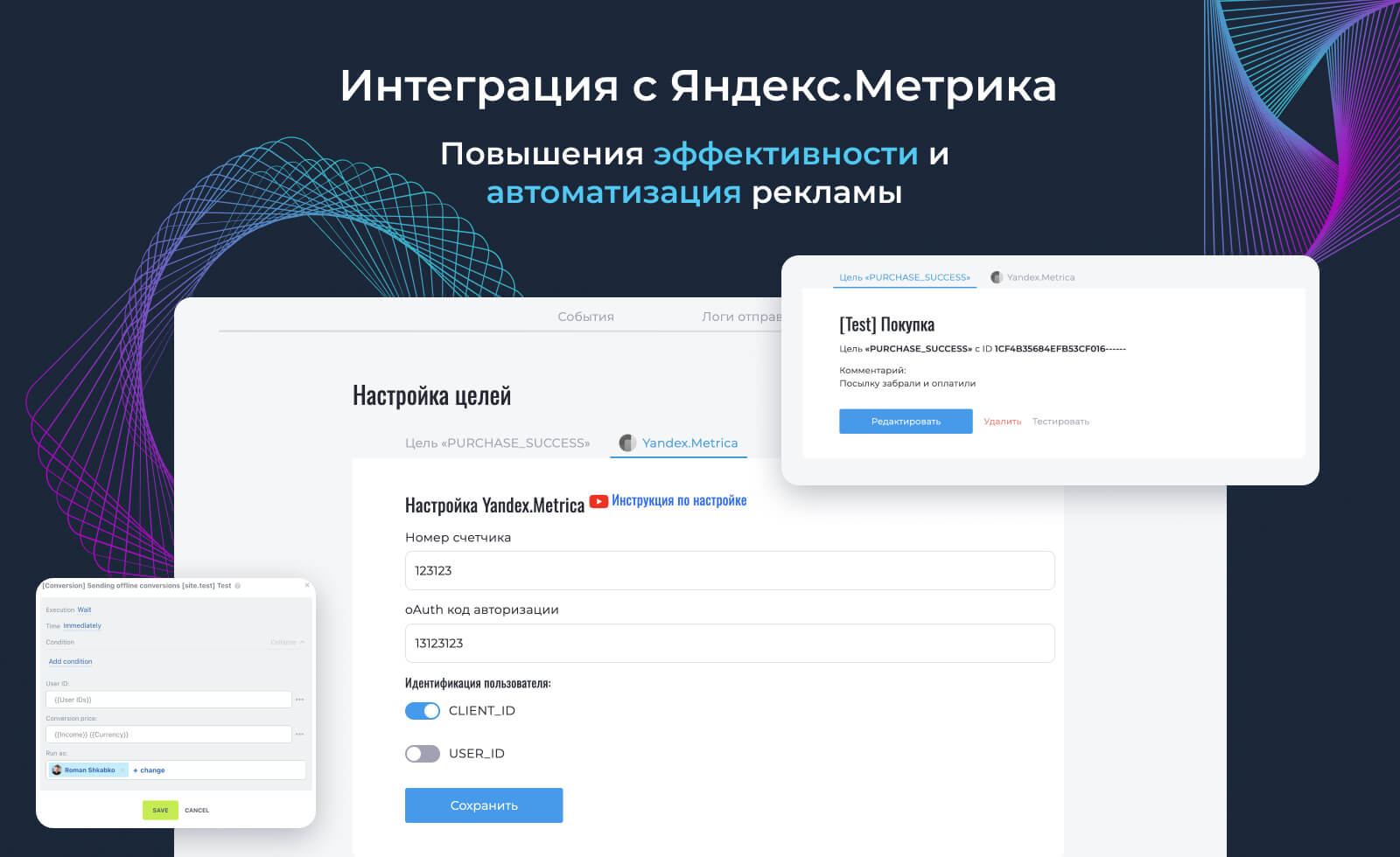Полная и бесплатная интеграция с Я.Метрикой. Повышает эффективность рекламы. Офлайн-конверсии, автоцели и аналитика.