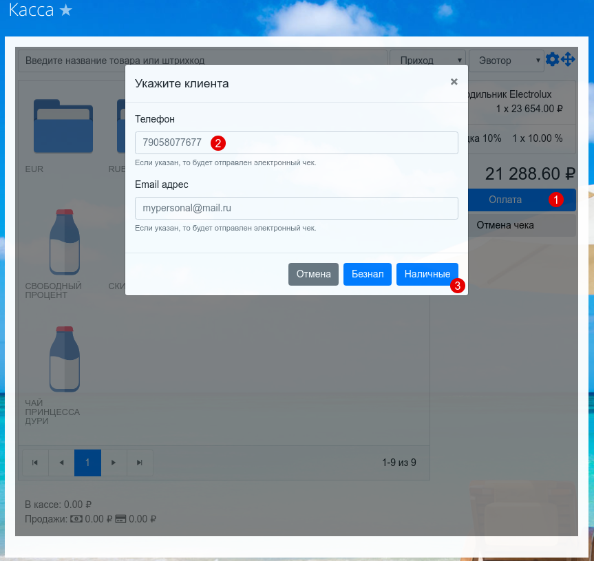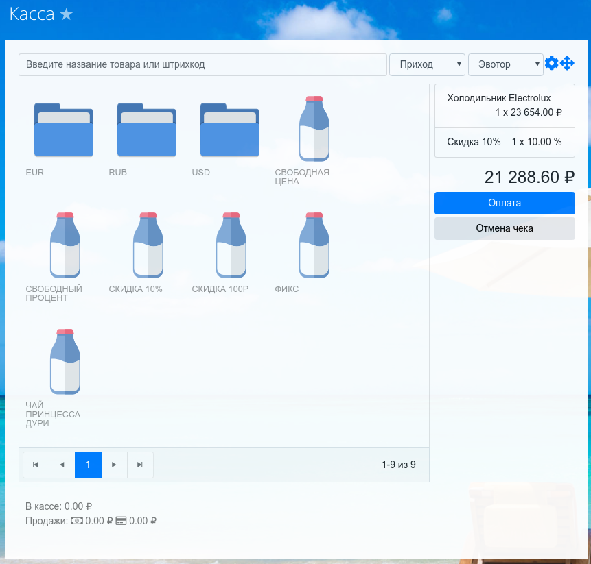 Интерфейс работы с кассой встроен в Битрикс24. Не нужно устанавливать дополнительную программу для работы с кассой. Работает прямо в браузере. На любых устройствах.