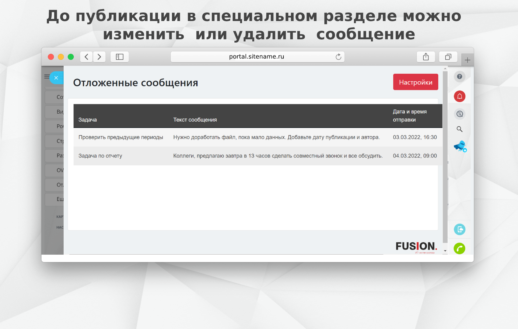 Fusion: Отложенные сообщения - публикуйте свои комментарии в любое удобное вам время!