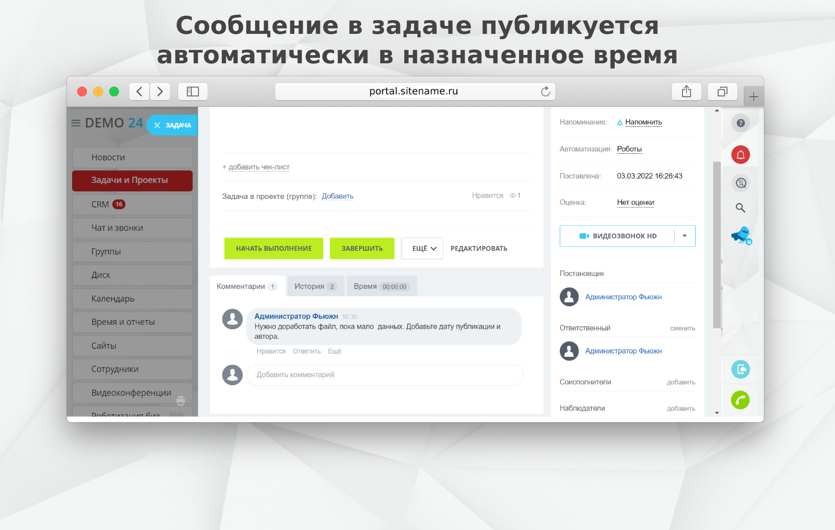 - Руководителям любых подразделений для обратной связи сотрудникам по задачам в определённое время.