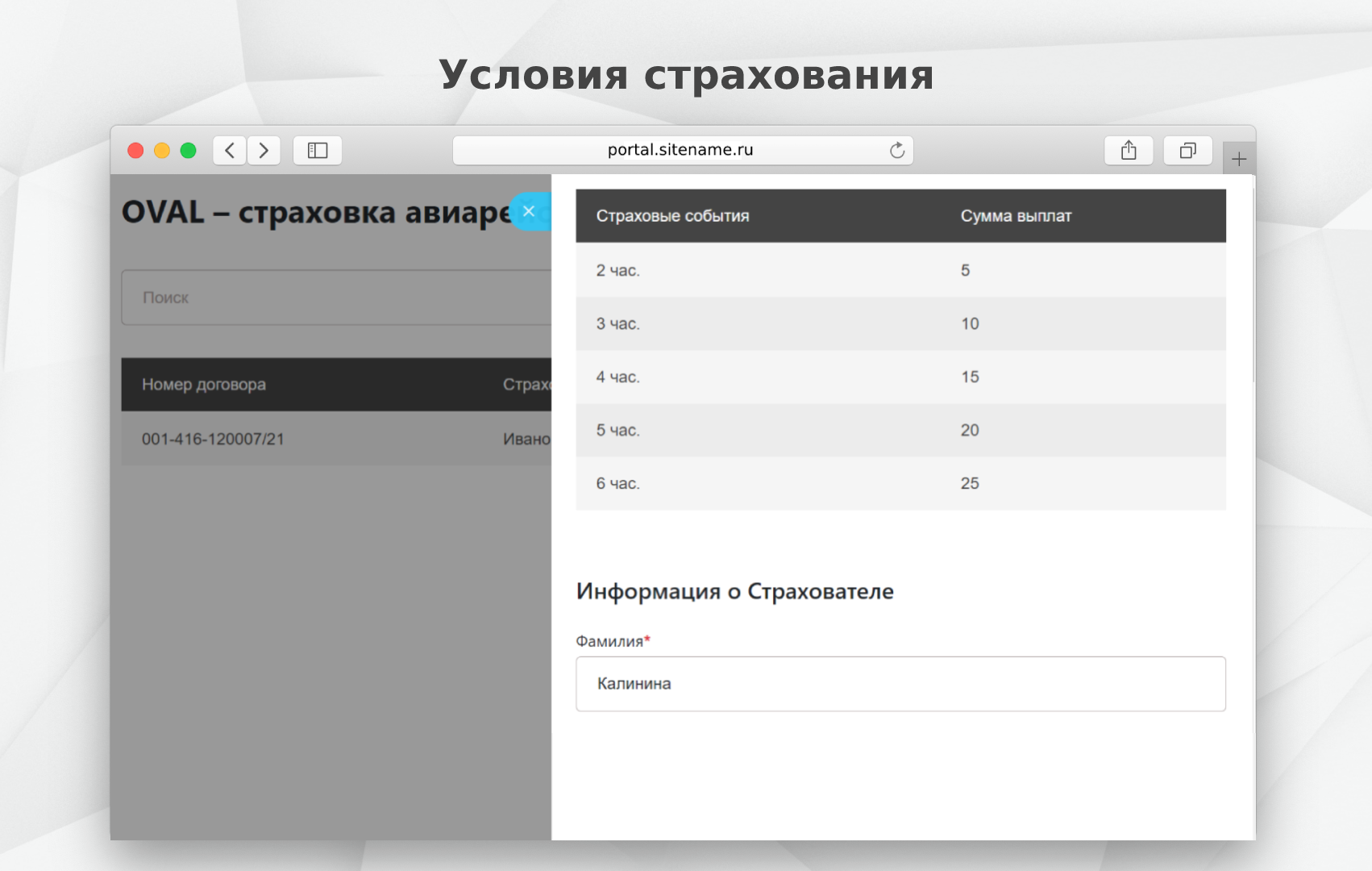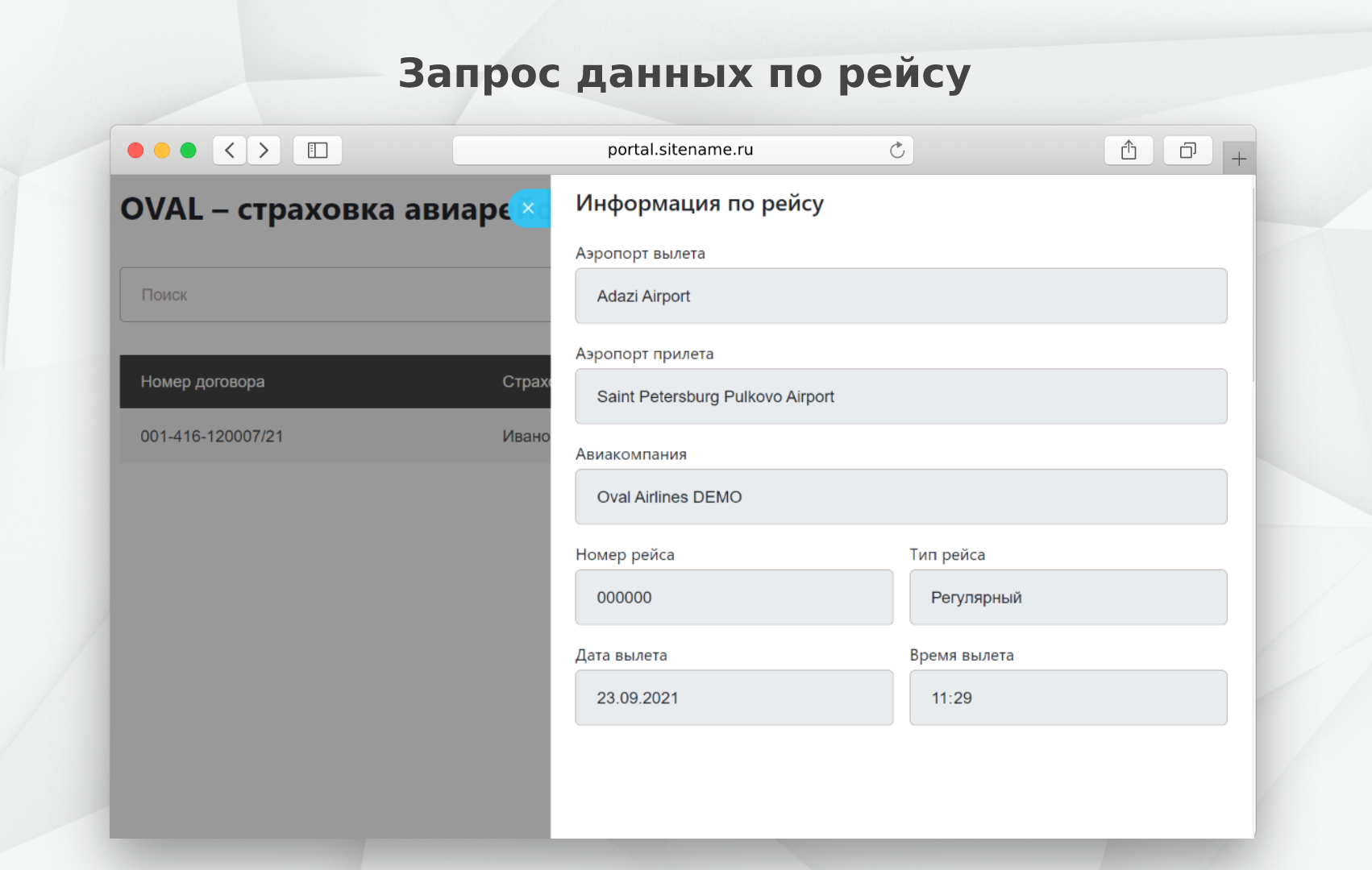 Приложение по страховке при задержке и отмене авиарейса – это интеграция Oval и Битрикс24, которая позволяет оформить и оплатить страховой договор прямо через портал. Заключенный договор страхования, оформленный через портал, позволяет получать выплаты автоматически в кратчайшие сроки, без каких-либо посещений страховых организаций.
