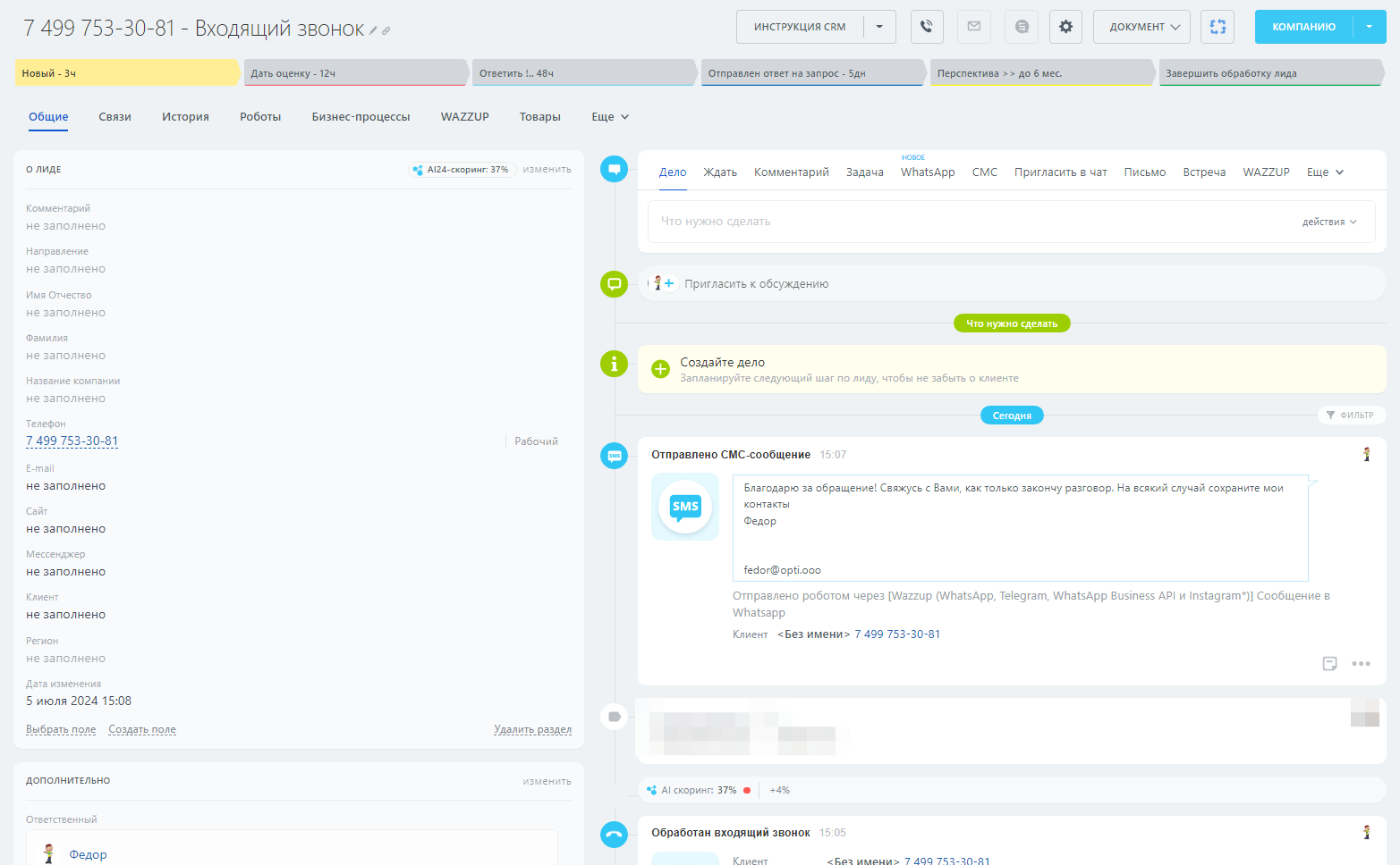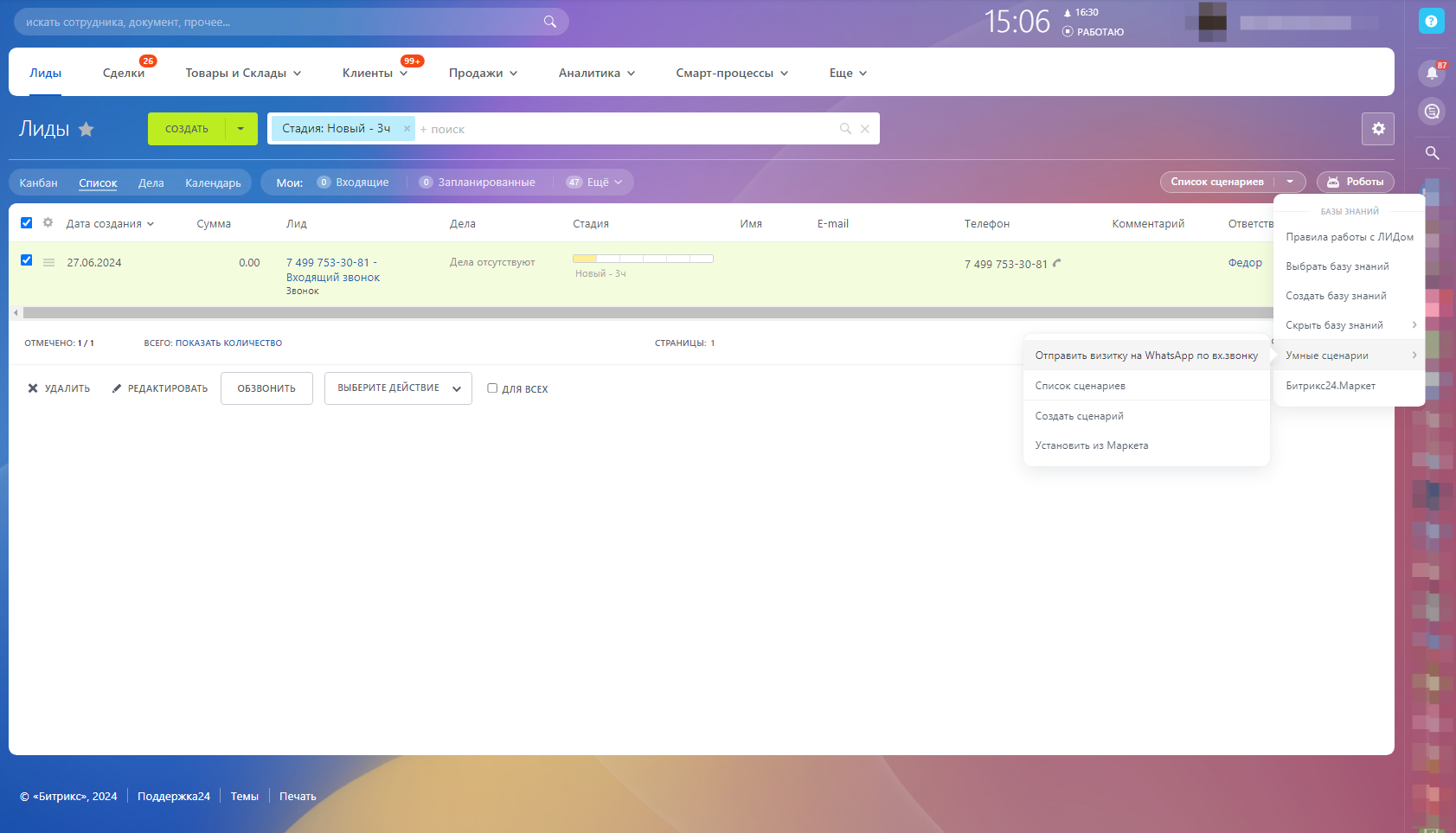 Данное решение разработано для работы с ЛИДами/Сделками. Для работы сценария нужен подключенный канал для отправки сообщений, мы готовы выполнить эти работы при установке нашего приложения.