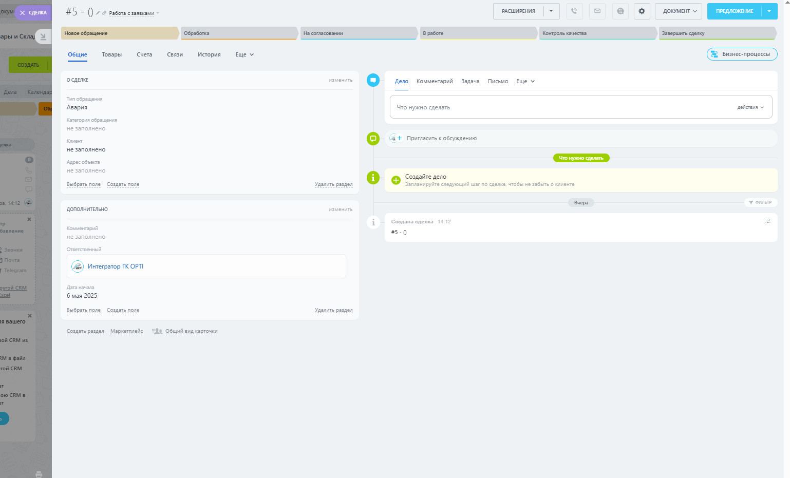 Также для вашего удобства мы добавили несколько пользовательских полей и настроили карточку Сделок. Добавлены поля: