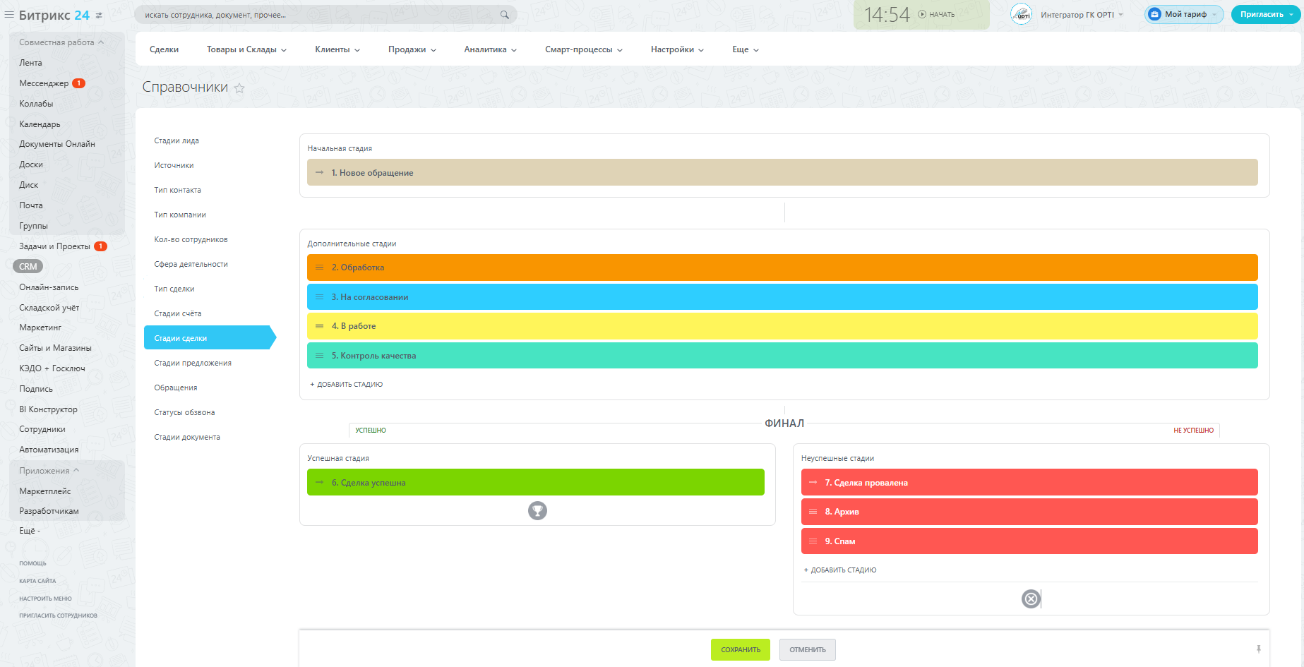 Администратор – имеет доступ ко всем данным CRM, может их редактировать и удалить