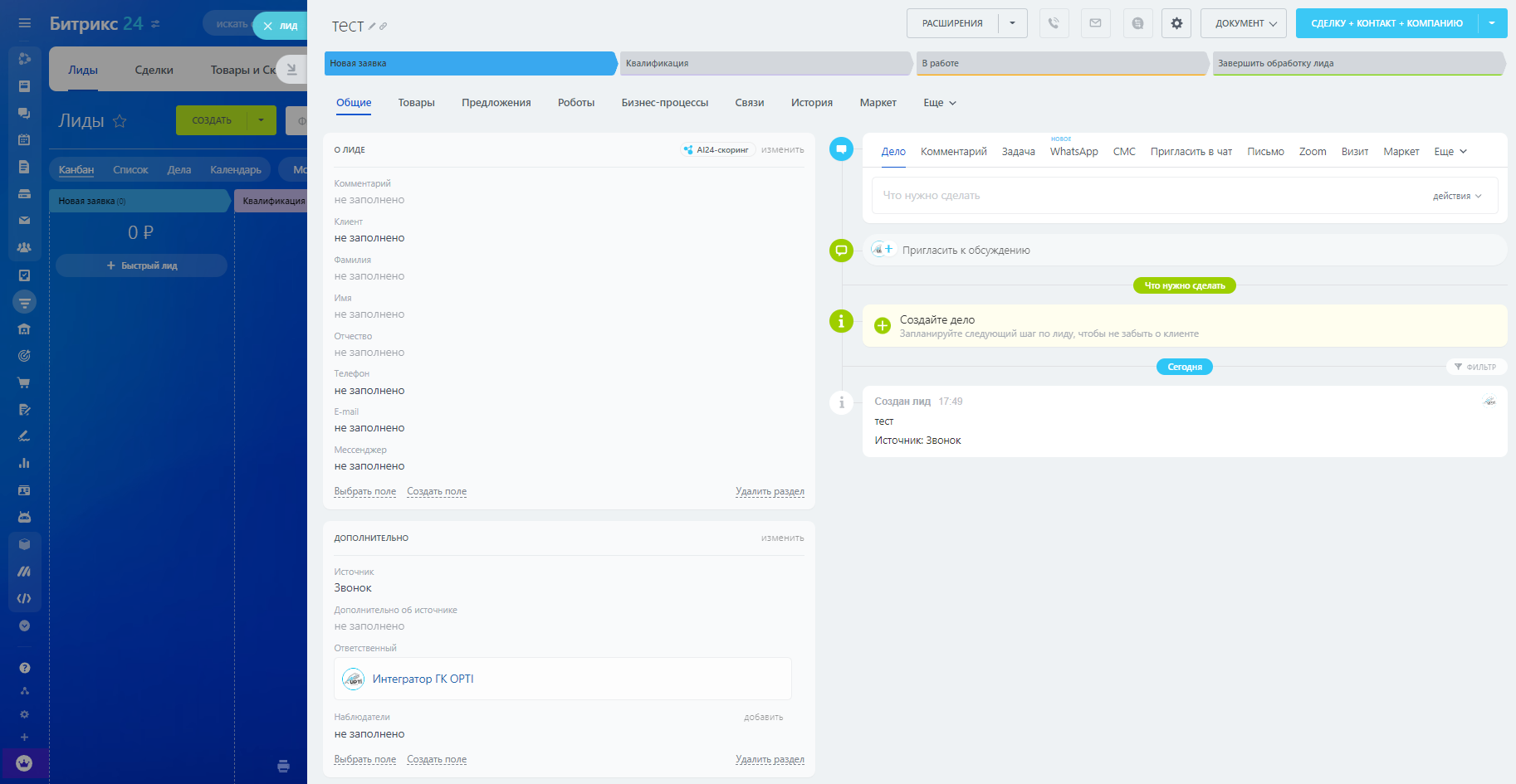 - Квалификация. Назначается дело ответственному сотруднику, чтобы он связался с клиентом