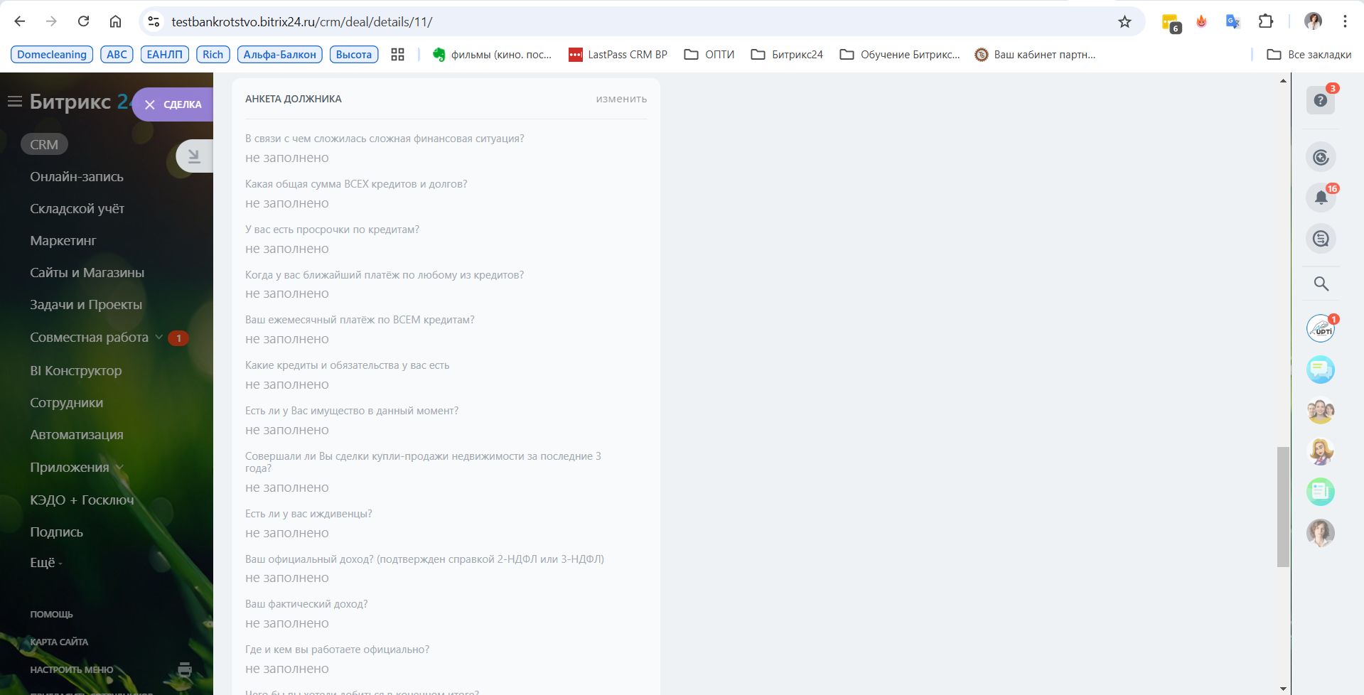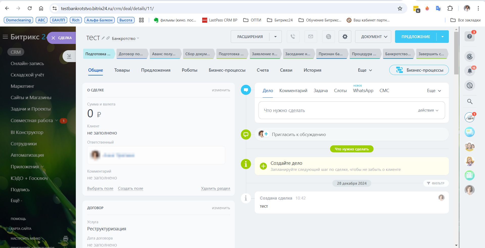 CRM разработана для управления процессами, связанными с банкротством физических лиц.
