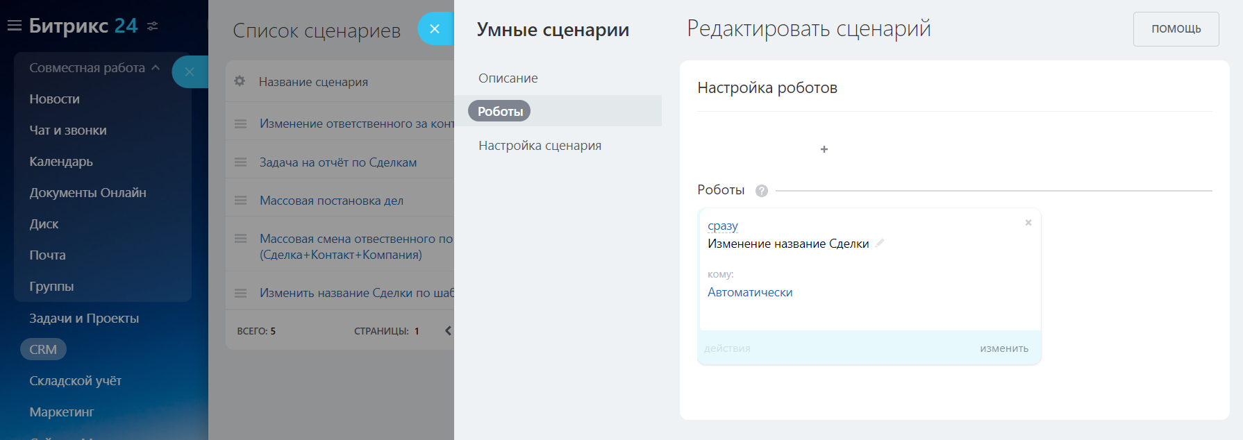 - Изменить название Сделки по шаблону. Шаблон можно скорректировать