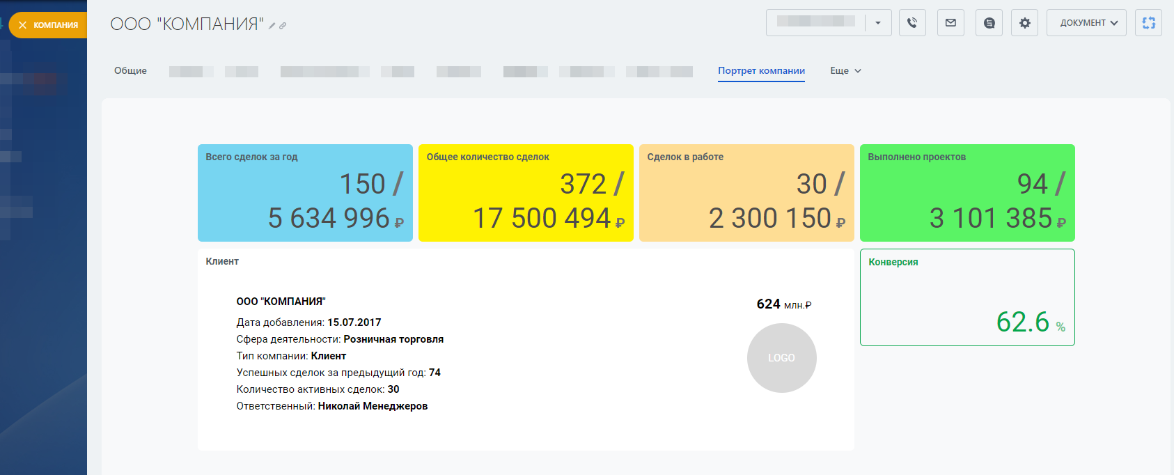 В карточке отчёта присутствует общая (дополнительная) информация о Клиенте, что также позволяет в рамках одного окна сделать выводы о важности данного Контрагента для заказчика.