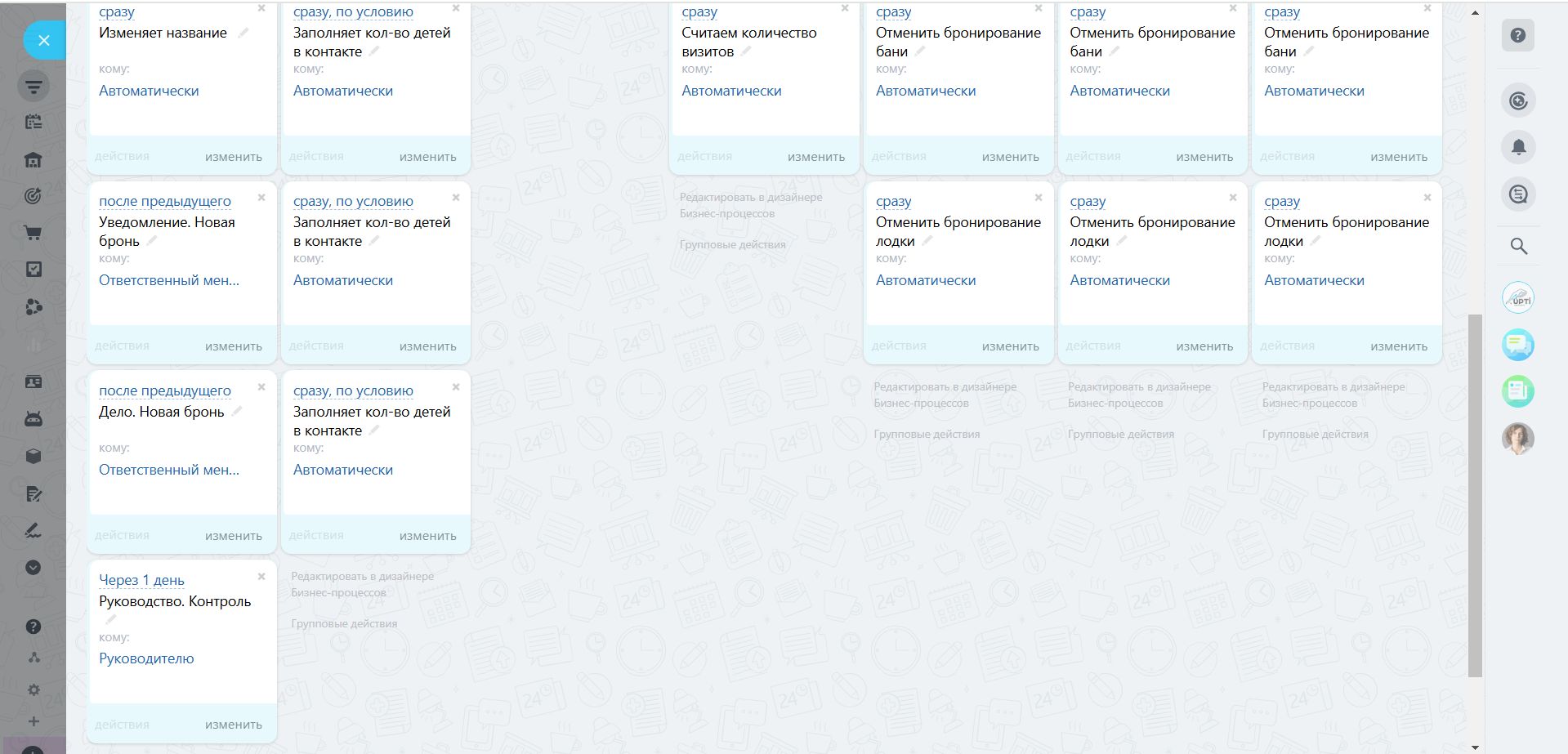 • робот, который отмечает в карточке контакта поле «Любитель бани», если гость бронировал баню.