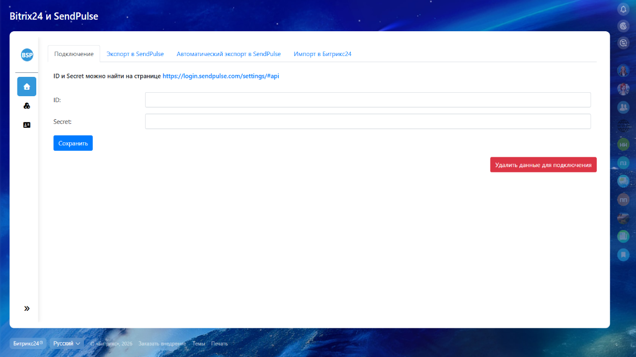 Двусторонний обмен данными: Битрикс24 ↔ SendPulse.