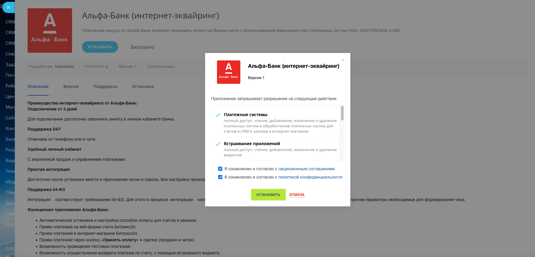 - Автоматическая установка и настройка способов оплаты для счетов и заказов.