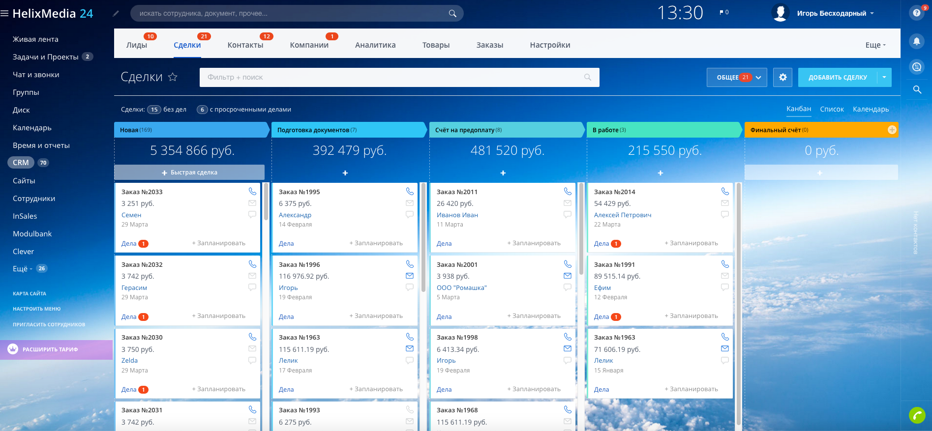 - Дела(задание по заказу) теперь можно отключать. Так же, можно указывать срок исполнения задания в днях, переименовать тему задания и конкретное задание. В качестве дела, всегда по умолчанию исходящий звонок.