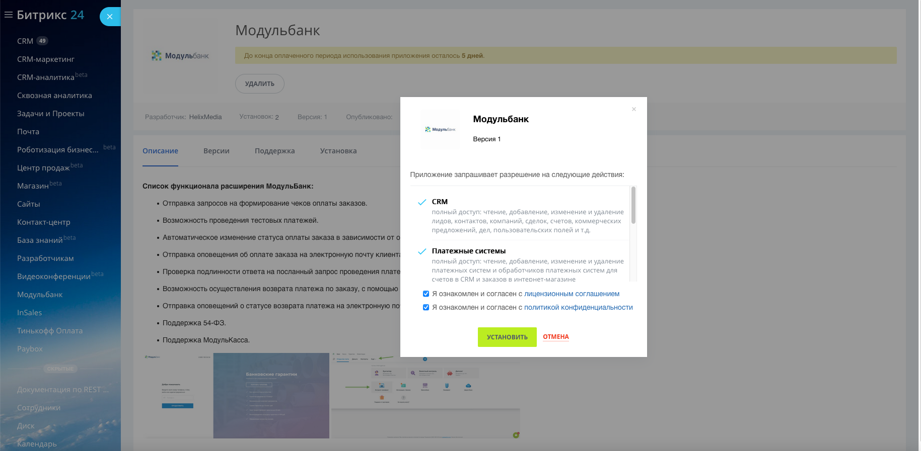 - Прием платежей на веб-форме счета и в интернет-магазине Битрикс24