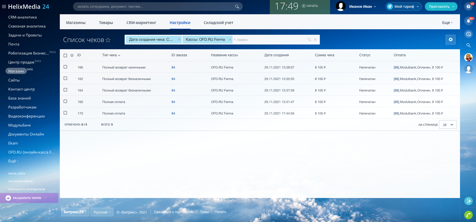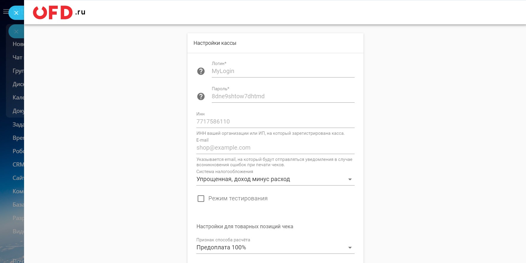 - Настроить работу облачной кассы в личном кабинете OFD.ru