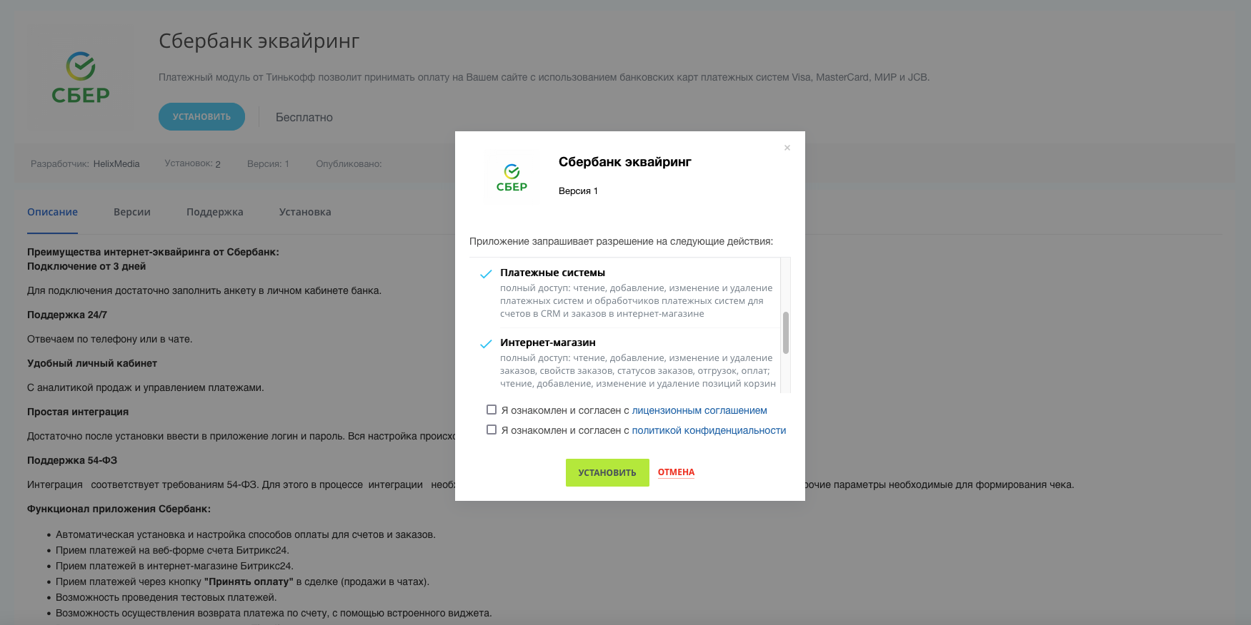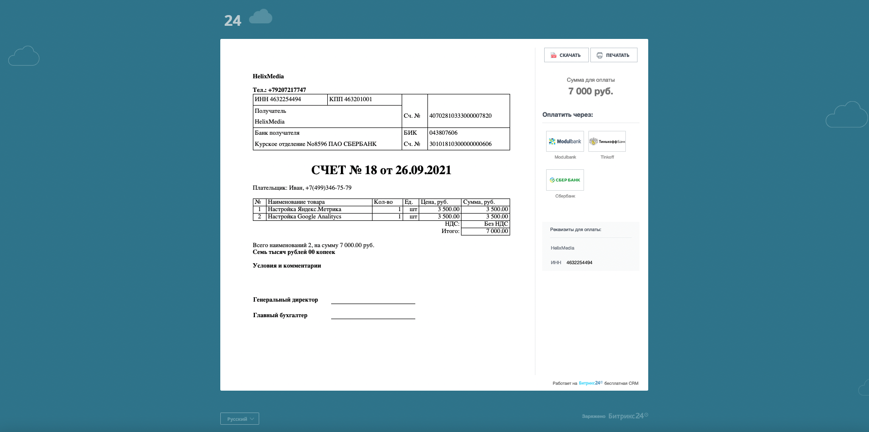 - Автоматическая установка и настройка способов оплаты для счетов и заказов.