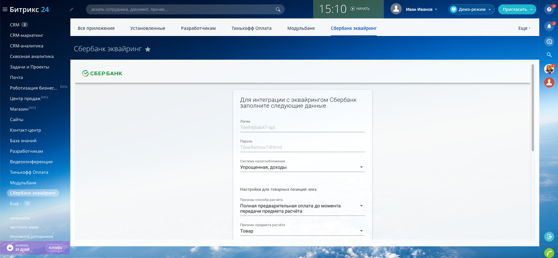 - Поддержка встроенных в Сбербанк онлайн-касс (поддержка 54-ФЗ).
