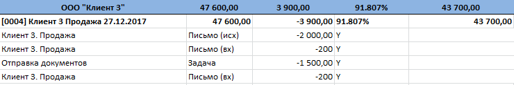 Далее, вычисляется стоимость затраченных ресурсов, на основании самостоятельно определенной стоимости CRM-действий.