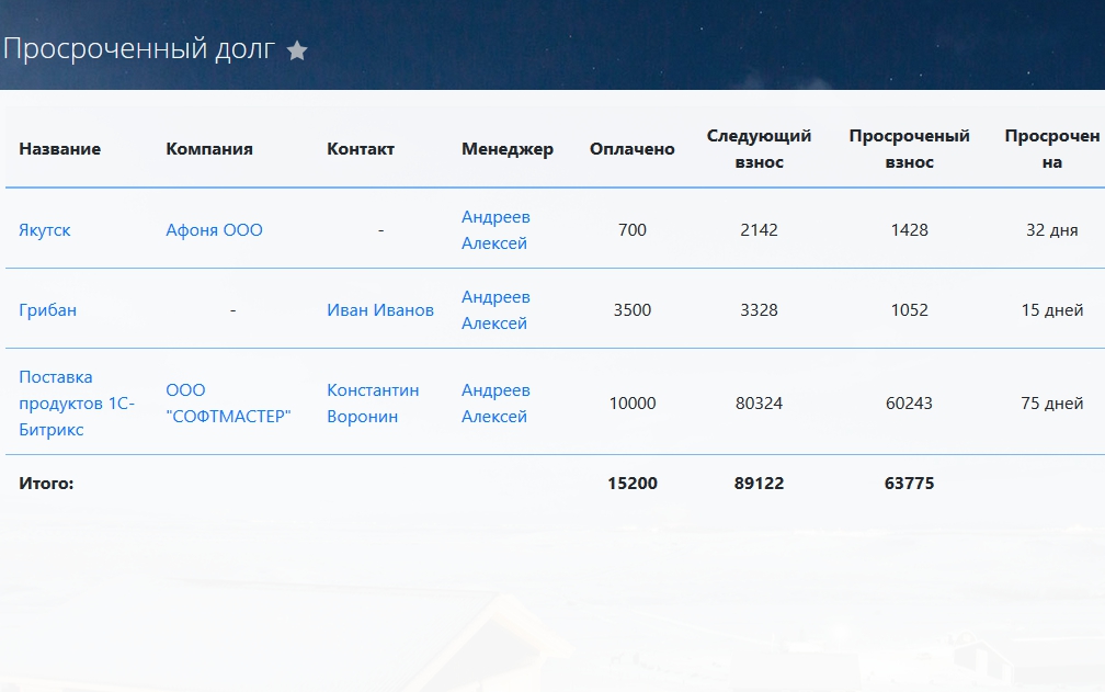 Приложение позволяет сформировать отчет по просроченной задолженности.