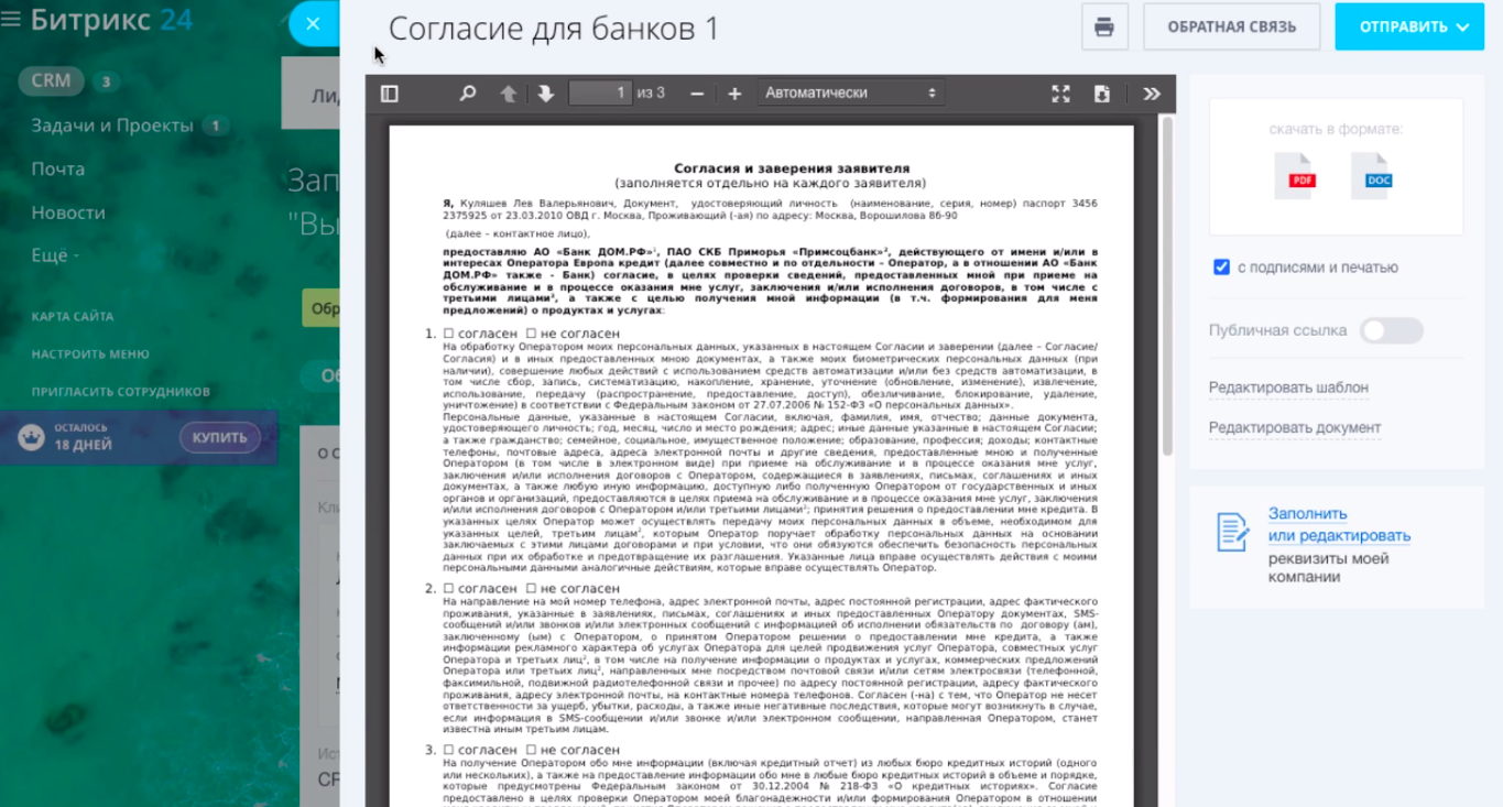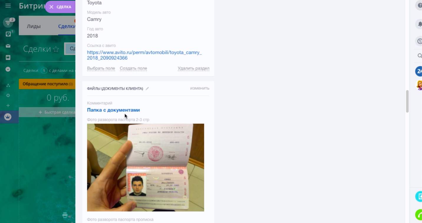 - Автоматическое прикрепление документов заемщика (паспорт, фото, водительское удостоверение)