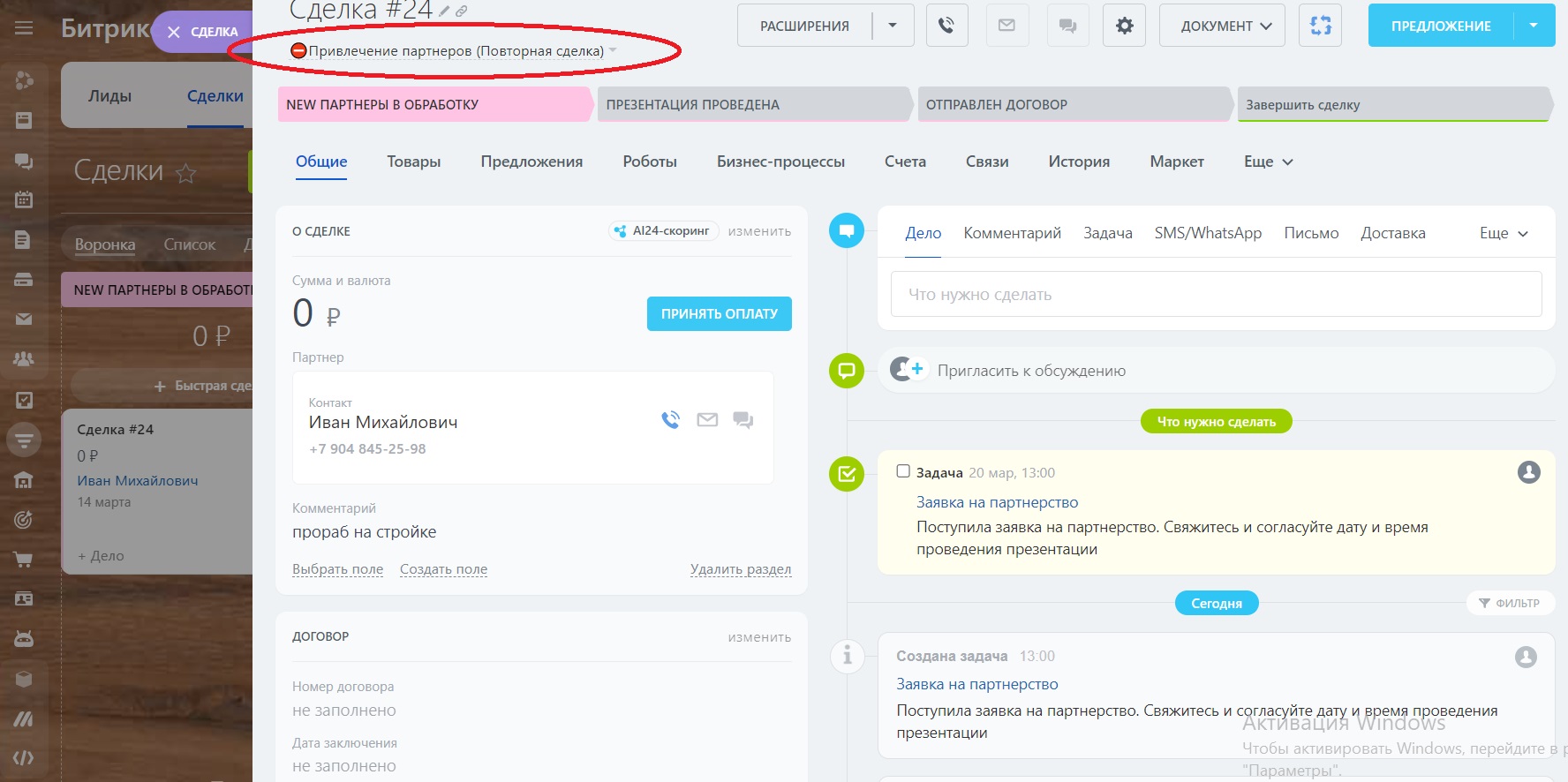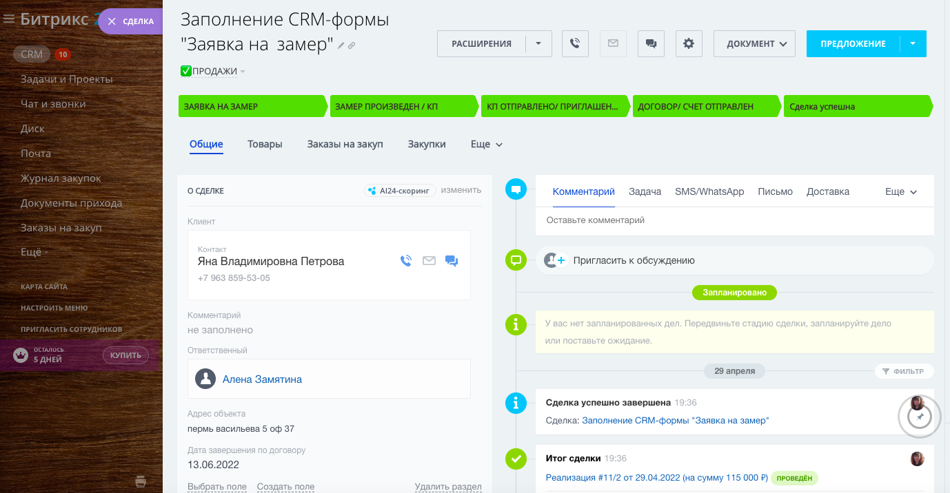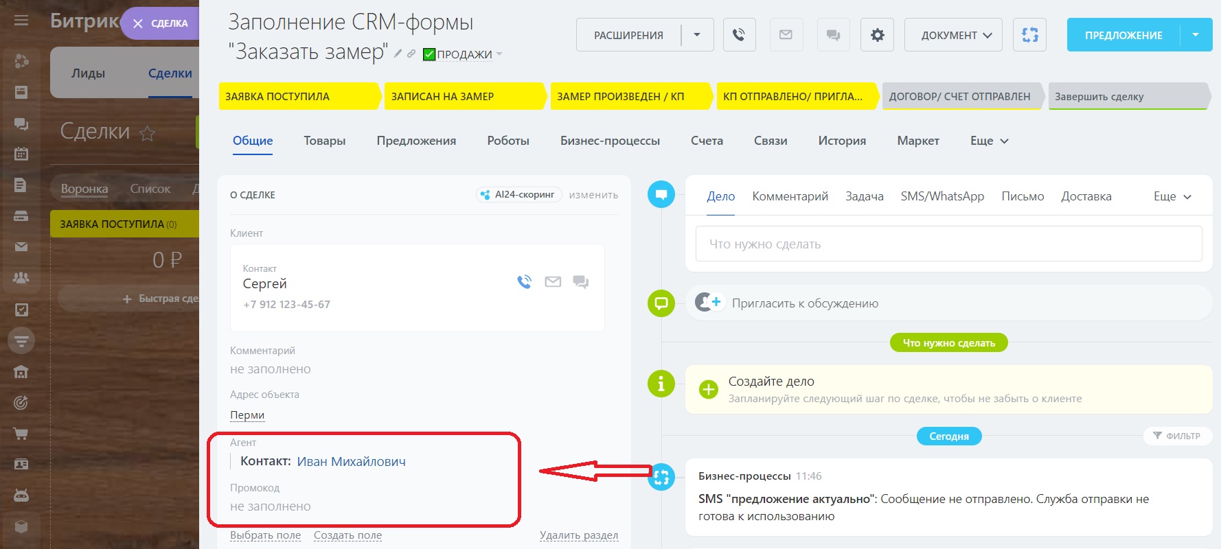 - Автоматическое добавление клиента через CRM формы контактных данных