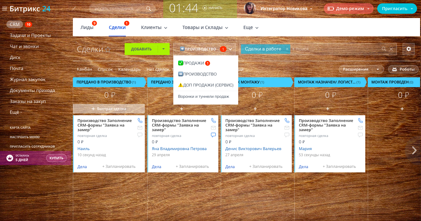 Подходит для производства мебели: кухни, мягкая мебель, корпусная мебель, стулья, шкафы-купе и пр. Данное решение включает в себя все последние новинки Битрикс24. Все готово для работы: нужные поля, данные, воронка продаж, воронка производства, воронка доп. продаж, складской учет. ДЕМО ВЕРСИЯ 14 дней