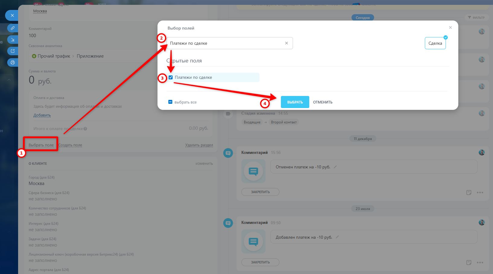 - Данные внесенные в платежи в дальнейшем можно использовать для автоматизации работы в CRM.