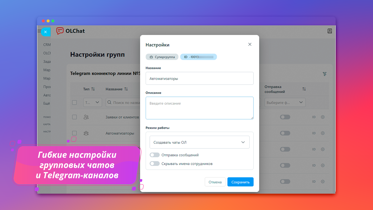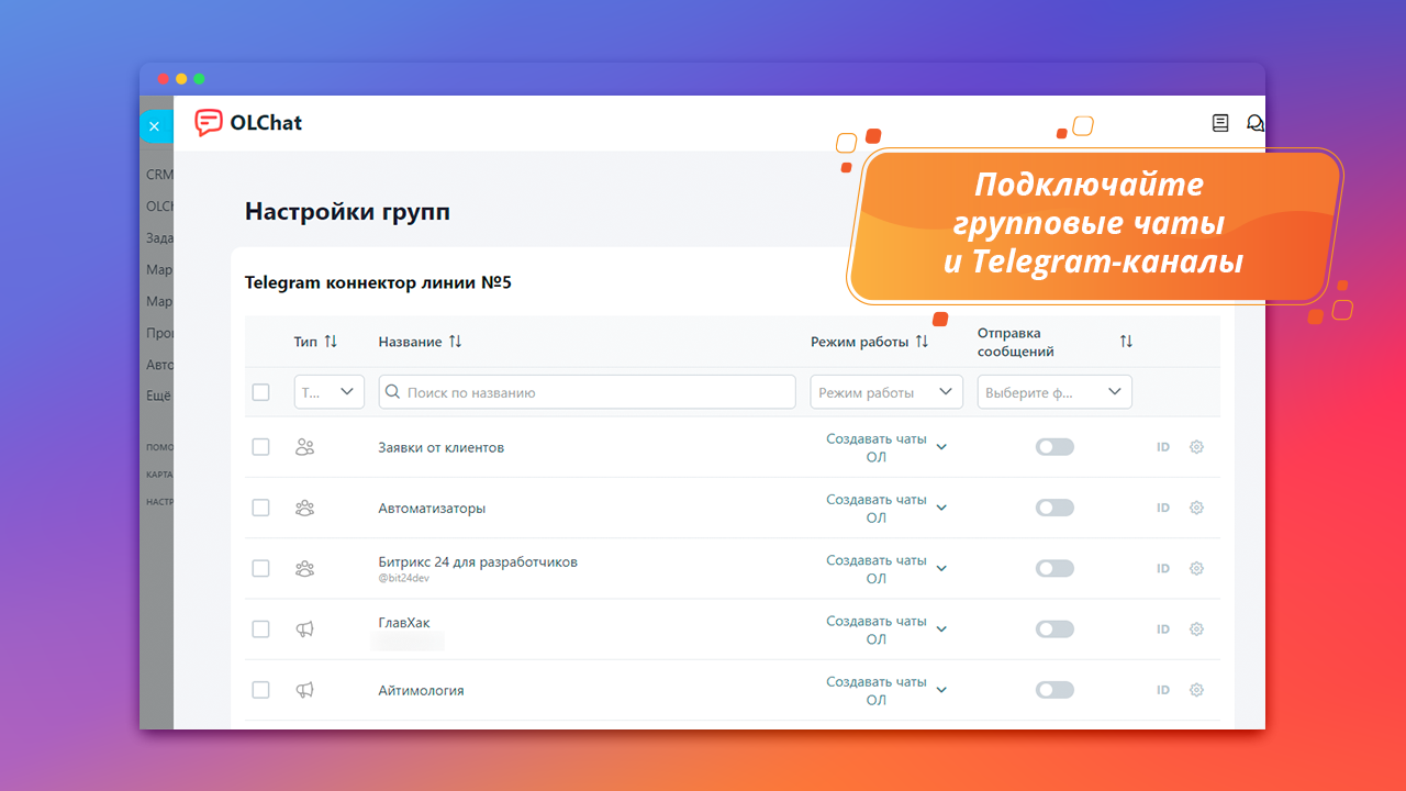 Подключите Чаты и Группы Telegram к открытым линиям! Приложение специально разработано для работы с открытыми линиями.