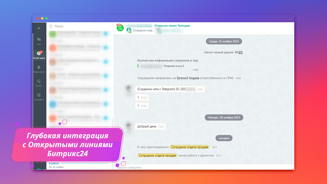 Получайте сообщения от клиентов, которые пишут в Telegram, прямо в Открытые линии Битрикс24.