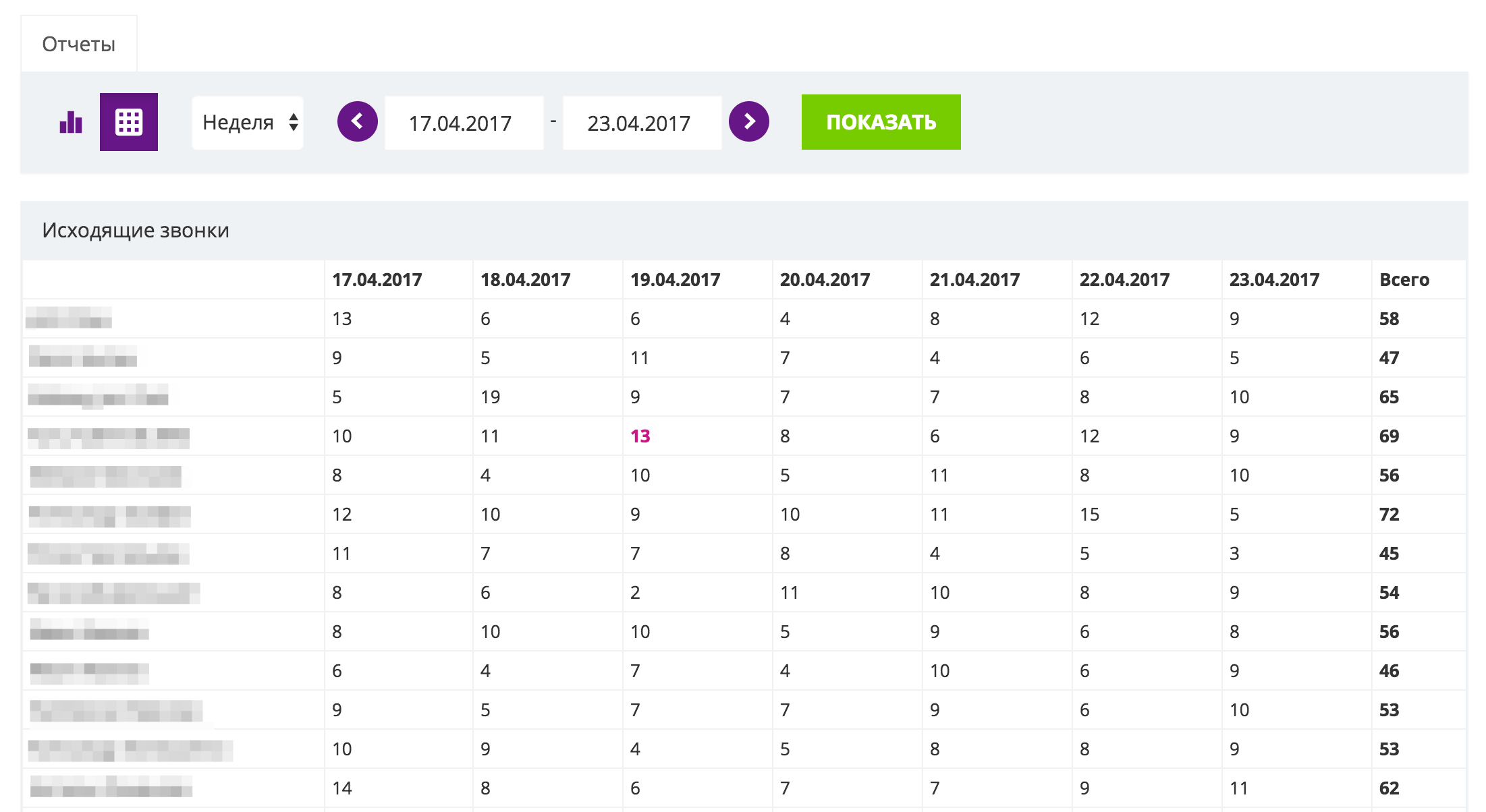 - Отчет по результативным исходящим вызовам (длительность более 20 сек);