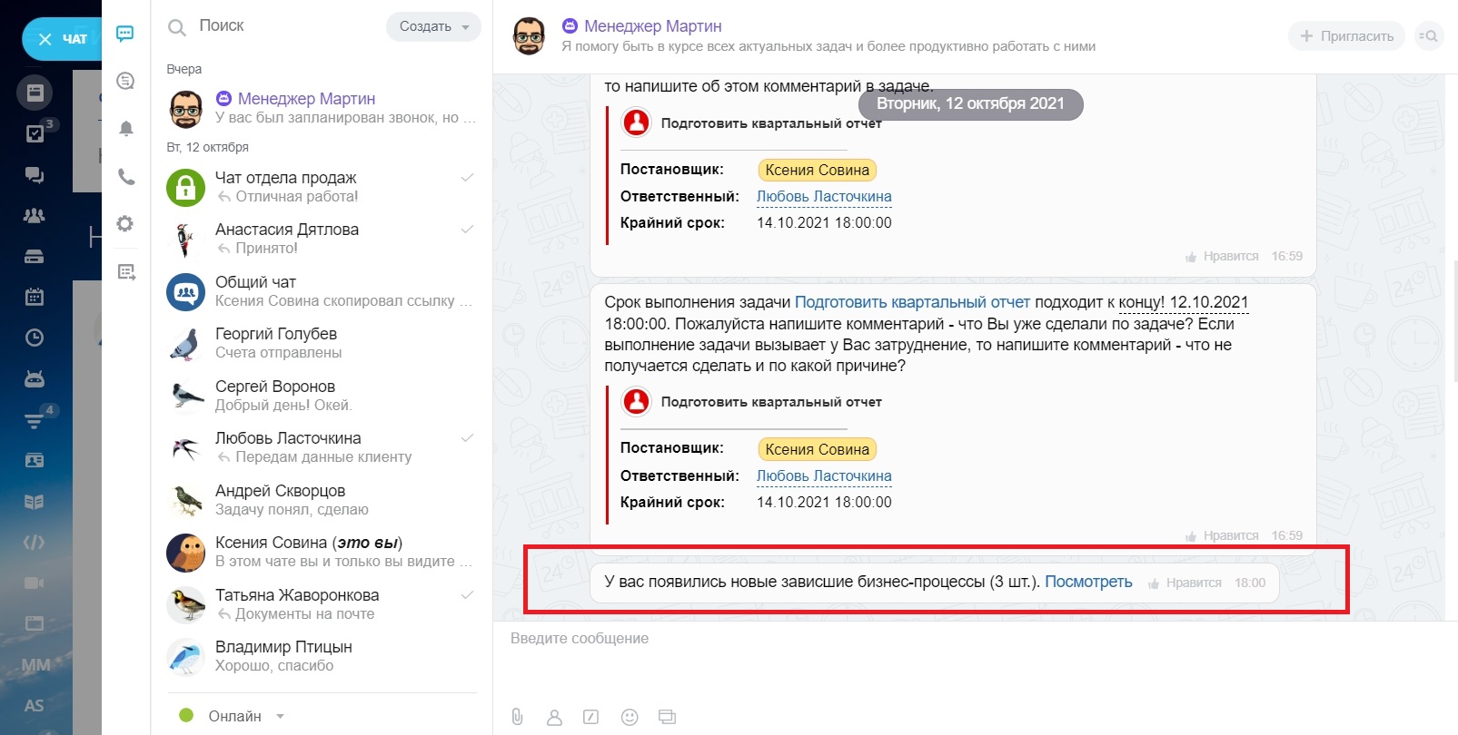 Мартин помогает быть в курсе всех актуальных задач и работать с ними более продуктивно.