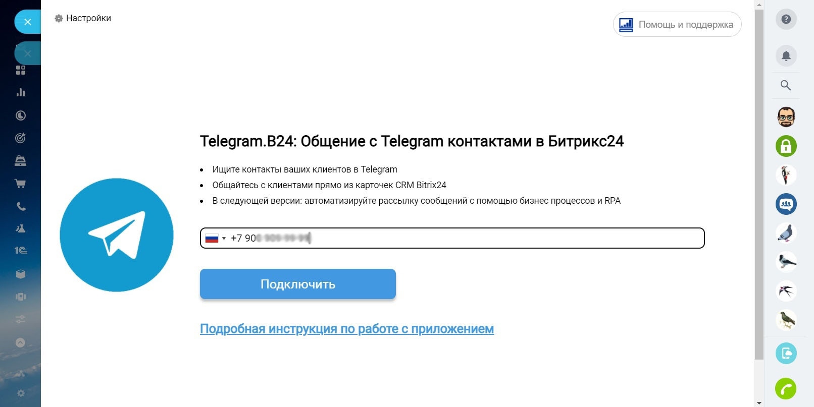 Внимание! Приложение Telegram.B24 Plus не получает обновления с 2021 года. Получить больше возможностей вы сможете в нашем решении Telegram.A24