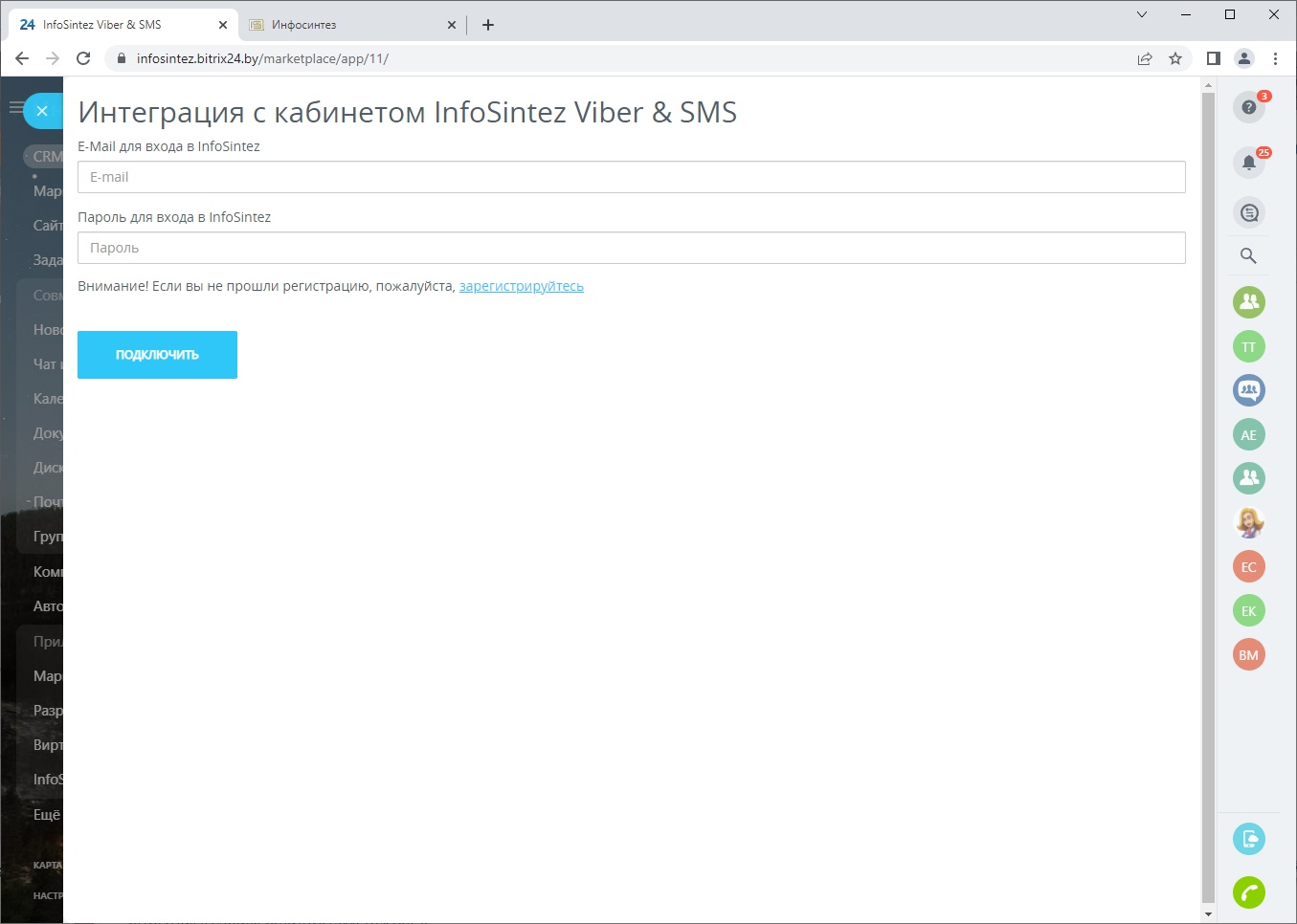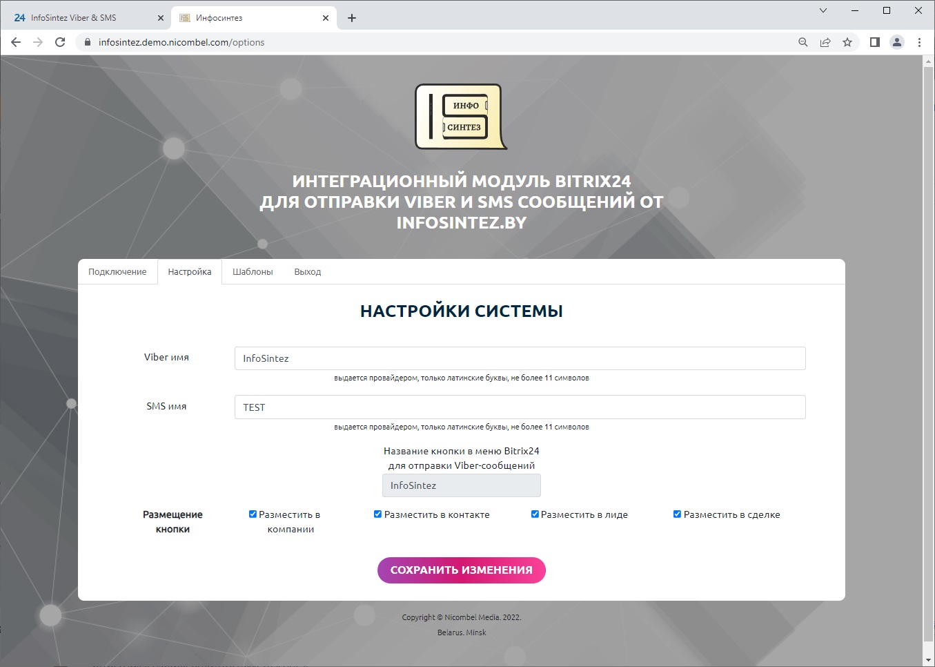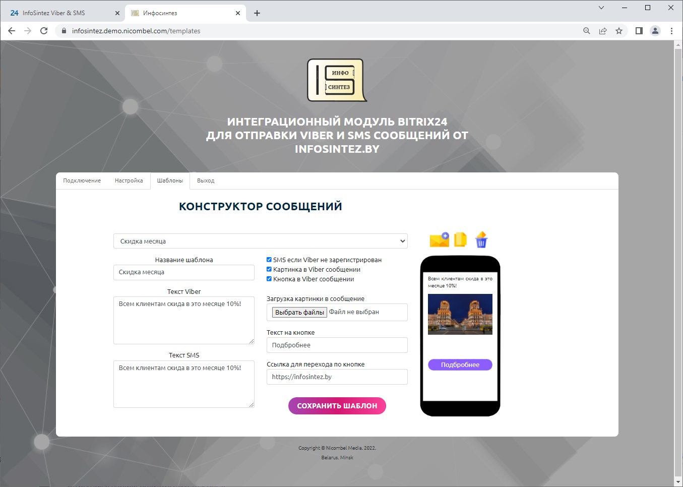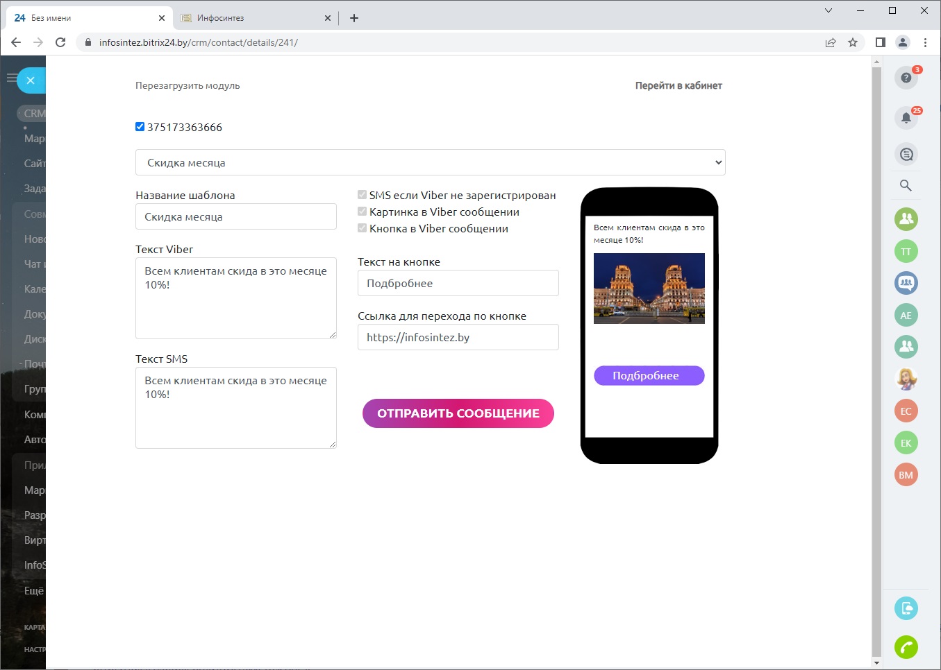 Отправка Viber и SMS сообщений из карточки клиента, лида, сделки. Интеграция с платформой InfoSintez
