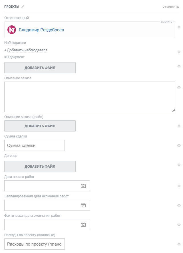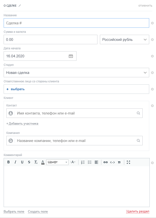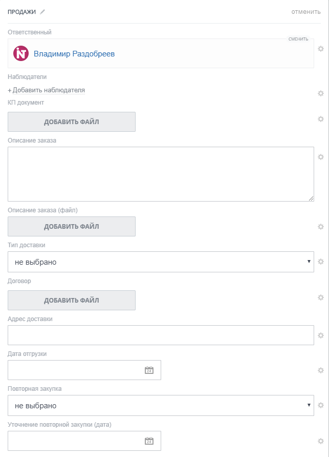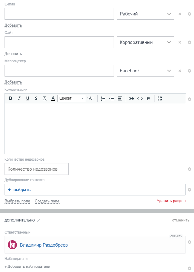 Т.к. каждый бизнес имеет свои особенности и информация, которую необходимо сохранить, в отраслевую CRM были добавлены дополнительные пользовательские поля.